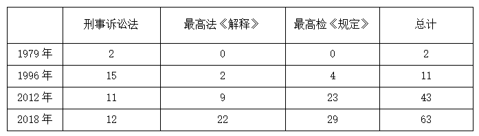目前,在《刑事诉讼法》以及相关司法解释中,听取意见规则的条文数量大幅增加,搭建了规模可观的规范体系。以《刑事诉讼法》《公安机关办理刑事案件程序规定》(简称“公安部《规定》”)以及历年最高人民法院和最高人民检察院发布的关于《刑事诉讼法》适用的司法解释(以下分别简称最高法《解释》和最高检《规则》)为例,1979年关于听取意见的规定仅仅只有2个条文,1996年增加到11个,2012年增加到43个,2018年增加到63个(如表1所示)。听取意见规则在侦查阶段、审查起诉阶段、审判阶段都呈现出大规模扩张的趋势,并延展到强制措施适用、不起诉审查、庭前会议、涉案财物处置、死刑复核程序、速裁程序、刑事和解等程序当中(如表2、表3、表4所示)。听取意见规则的内容逐渐丰富,逻辑逐渐严密,听取意见的主体要求、时间、地点、形式、是否制作笔录、笔录是否附卷、未听取意见如何获得救济等问题逐渐完善。这些规定贯穿于刑事诉讼全流程,并在不同的诉讼阶段承担着多样化的功能,改变了公安司法机关绝对的单方秘密作出程序决策的情况。