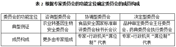 根据在行政决策过程中的功能定位不同,可将专家委员会分为咨询型委员会、协调型委员会和决定型委员会。咨询型委员会的设立目的在于将外部力量导入行政决策过程,弥补行政机关专业知识的不足,因此咨询型委员会人员应当更多由具有专业知识和经验的专家组成。例如,农业转基因生物安全委员会承担农业转基因生物安全评价的技术咨询职能,其完全由从事农业转基因生物研究、生产、加工、检验检疫以及卫生、环境保护等方面的专家组成。