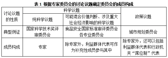 就处理科学议题的专家委员会而言,其主要任务在于认定科学事实和专业技术问题,为行政决策提供可靠的专业信息和质量保证,因此一般应由具有相关专业知识的专家组成。诸如国家科学技术奖评审委员会等同行评审型专家委员会,不宜设置利益群体代表和行政机关“席位制”代表。但科学知识往往具有社会建构性,当科学议题可能混合价值判断,并且可能涉及重大的社会和经济影响时,可以吸纳利益群体代表作为专家委员会的成员。例如,食品安全国家标准审评委员会各专业委员会的成员中即包括消费者协会的代表。