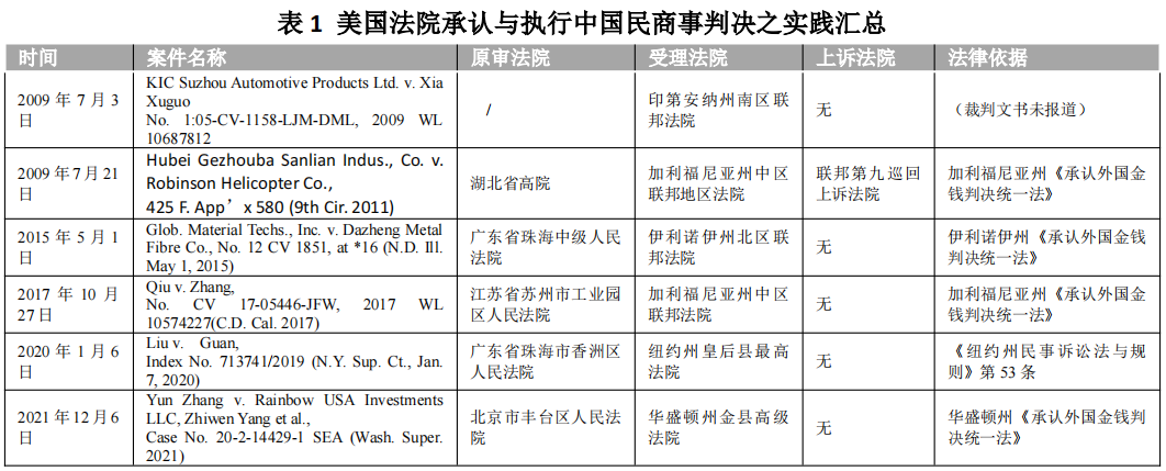 在全球化进程不断深化以及中国经济迅速崛起的背景下,涉外民商事纠纷数量呈现上升趋势,确保诉讼程序的公正与完善成为保障民商事纠纷主体合法权益的必要途径。如何有效承认与执行国与国之间的民商事判决,既是国际民事诉讼法的重要议题,也是我国维护当事人跨境利益的重要一环。2022年9月27日,中国最高人民法院召开涉外商事海事审判服务高水平对外开放新闻发布会,提出“进一步推动民商事判决承认与执行的国际司法合作,便利跨境民商事纠纷的解决,助力开放型世界经济发展。”美国作为中国重要的合作伙伴,为有效促进中美两大经济的交往,在跨境投资、金融、贸易等领域减少当事人诉讼负担,中美两国需加强司法协助,积极推动判决的相互承认与执行,促进双边经济和法律关系的健康发展。