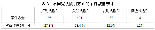 通过数据检索与分析,可以勾画出司法实践中宪法援引的基本轮廓,形成对于宪法援引的初步印象。