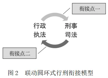 从理论上讲,行刑双向衔接的基本模型有两种可能:一种是分离直筒式(见图1),而另一种是联动圆环式(见图2)。