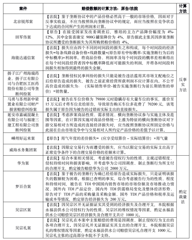 表1 我国反垄断损害赔偿数额计算思路梳理
