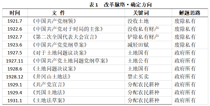 在进行农村土地产权改革的问题上,中国共产党面临的第一个命题是土地所有权的归属问题。在探索的过程中,中国共产党通过对革命形势的研判,呈现出了“废除私有—政府所有—农民所有—集体所有”的改革思路。