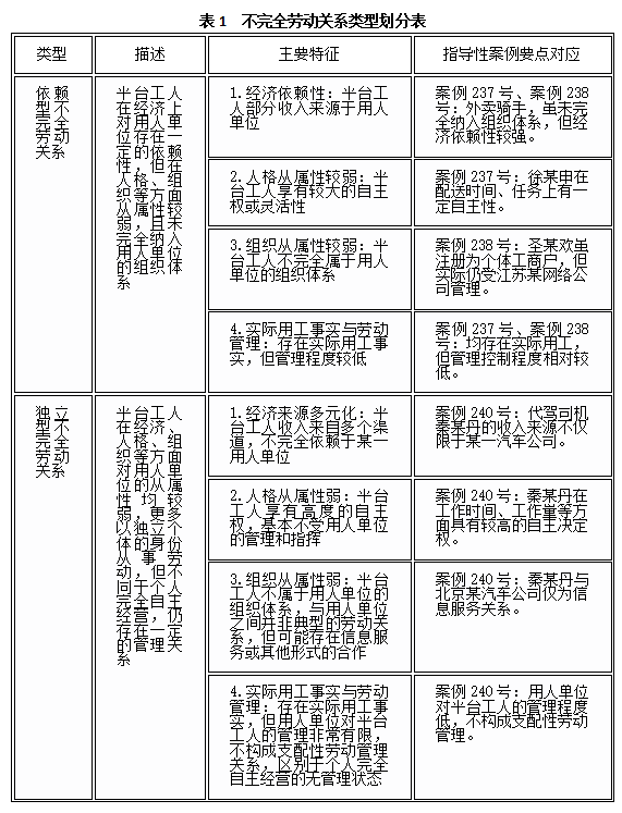 “指导性案例”中对案例237—240号的分析,与《指导意见》体现的两类劳动关系的划分存在冲突,这不仅在司法层面需要进一步思考和辨识不完全劳动关系多变、复杂的特质,在理论层面也需要进一步梳理和总结。