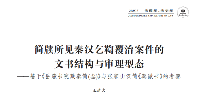 我刊2025年第4期发表的文章《简牍所见秦汉乞鞫覆治案件的文书结构与审理型态——基于<岳麓书院藏秦简(叁)>与张家山汉简 <奏谳书>的考察》,被中国人民大学复印报刊资料《法理学法史学》2025年第7期全文转载。
