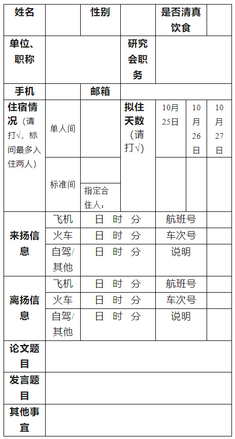 请参会人员务必填写报名回执(见附件二)并于2024年10月11日前发送至会专用邮箱:jingjifanh2024@163.com,邮件主题命名为“报名回执+姓名”。其他未尽事宜如有疑问可联系会务组。