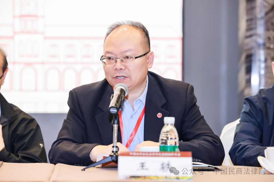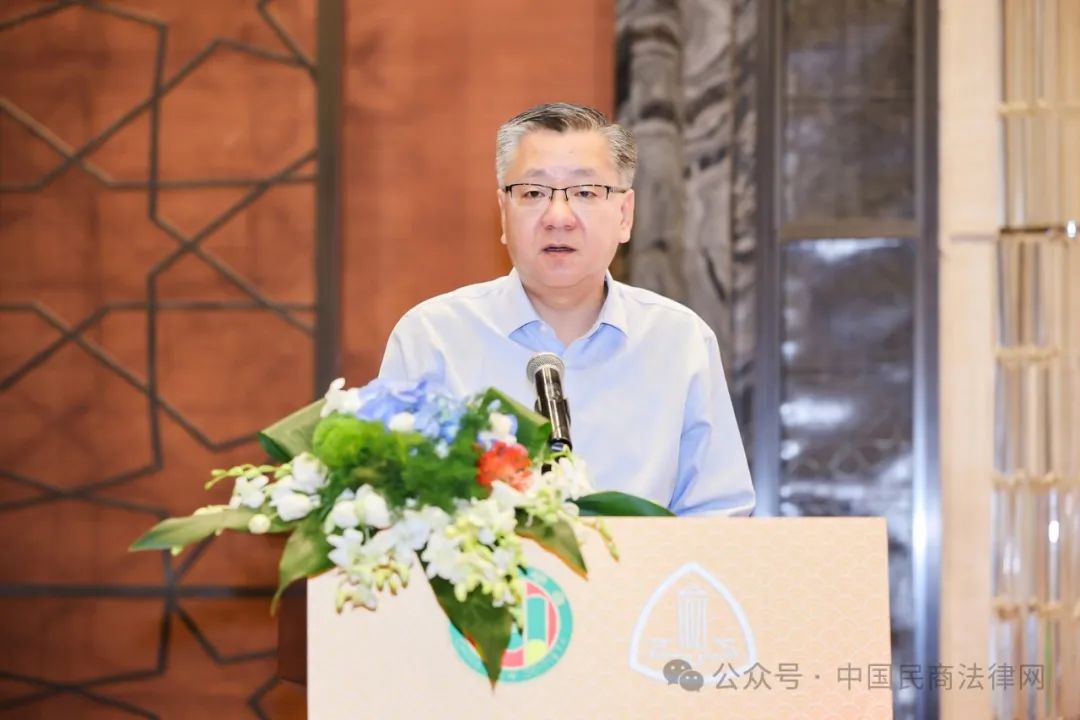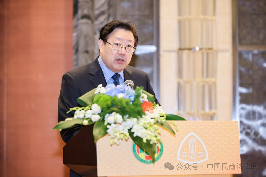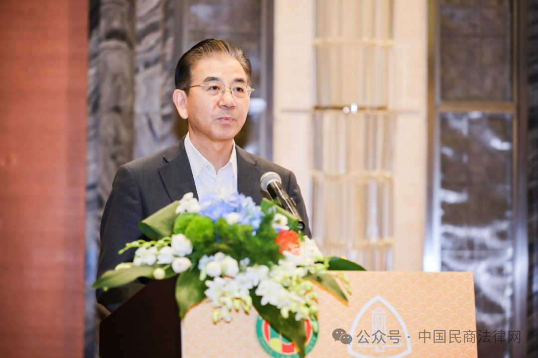 中国法学会副会长、中国法学会民法学研究会会长、中国人民大学一级教授王利明致辞。他代表民法学研究会感谢中国法学会对民法学研究会换届以来各项工作的肯定和支持,表示将按照中国法学会的要求,深入学习贯彻党的二十届三中全会精神,全面贯彻实施民法典,为中国式现代化提供重要法治保障。同时勉励新一代民法学人传承弘扬好老一代民法学家的思想和良好学风,积极推进建构中国自主的民法学知识体系,为中国民法学事业做出应有的贡献。