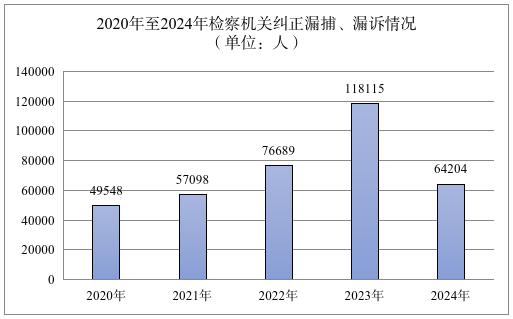 2. 审查逮捕、审查起诉办案质效进一步提升。检察机关准确把握逮捕强制措施的证据、刑罚和必要性条件,2024年,捕后法定不起诉、证据不足不起诉及捕后判决无罪合占捕后审结人数的0.27%,总体呈下降趋势且维持在较低水平。对于不批捕决定,复议复核后改变77人,为2020年的三分之一左右。对于不起诉决定,复议复核后改变63人,占复议复核审结人数2.5%。撤回起诉1291人(不含因醉驾型危险驾驶罪认定标准调整而撤回起诉人数),人数下降20.7%。判决无罪、不负刑事责任418人,占比为0.03%,呈下降趋势且维持在较低水平。依法开展羁押必要性审查44422件次,提出变更建议或者直接变更24660件次,防止“一押到底”。对拟不起诉、审查逮捕、刑事申诉、羁押必要性审查案件分别开展听证112624件次、3141件次、2610件次、3416件次,检察权运行更加规范。