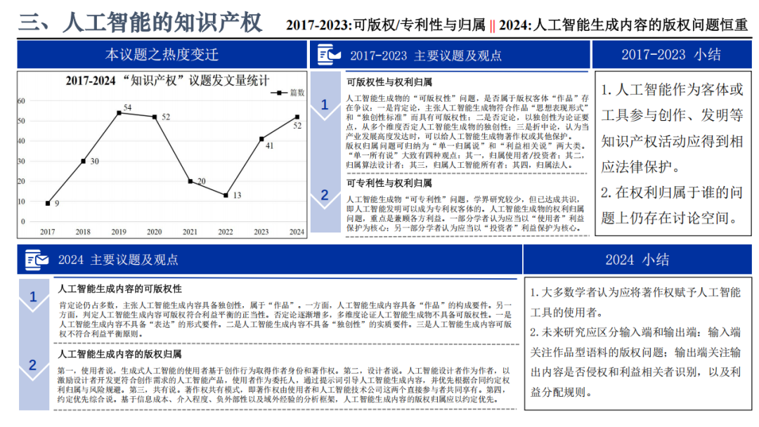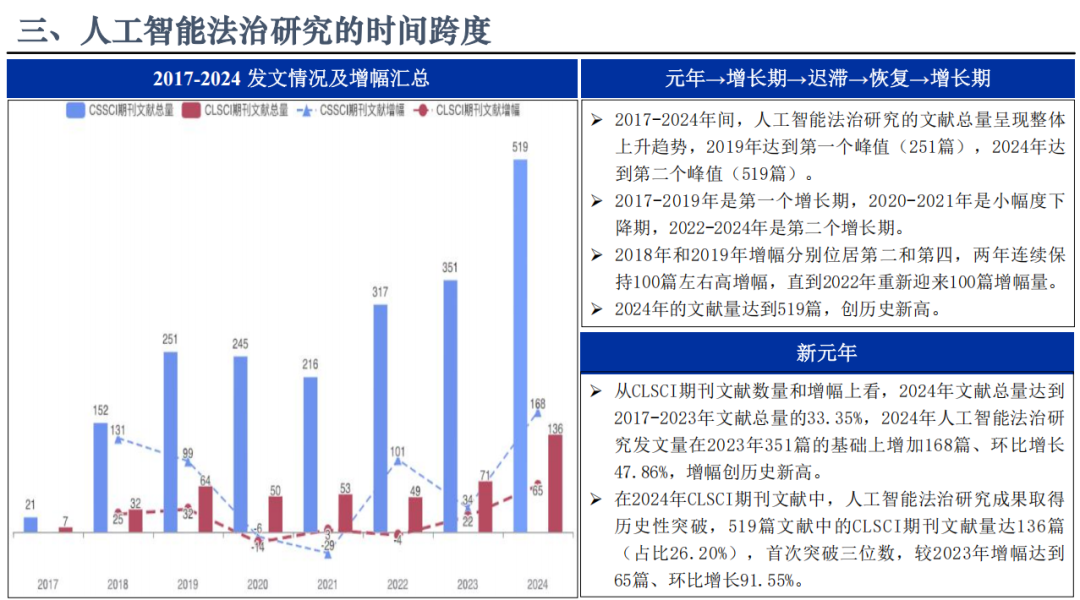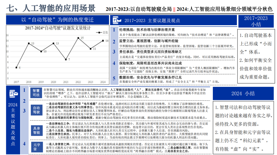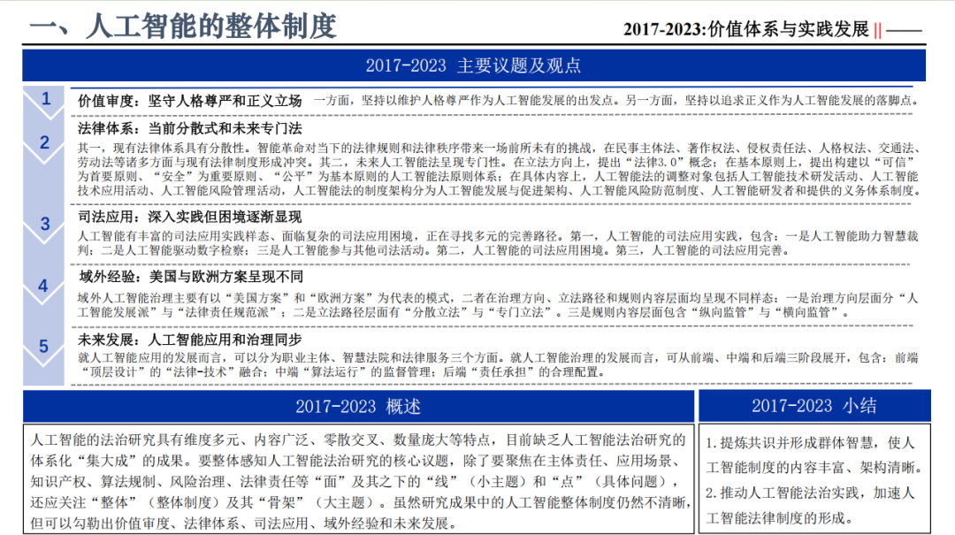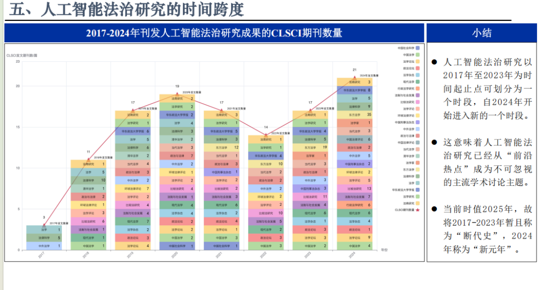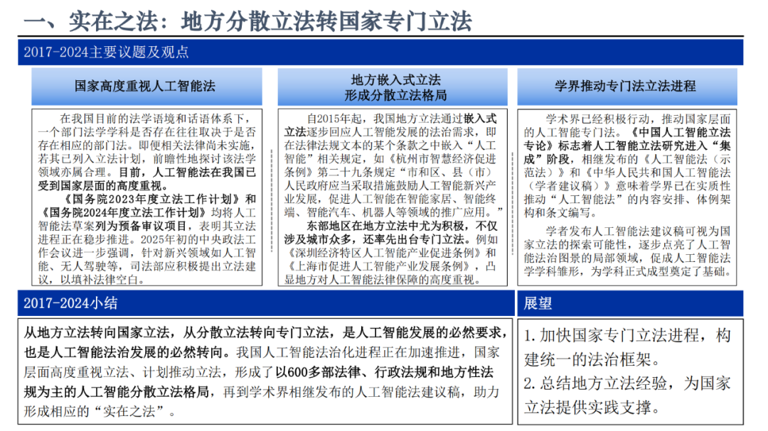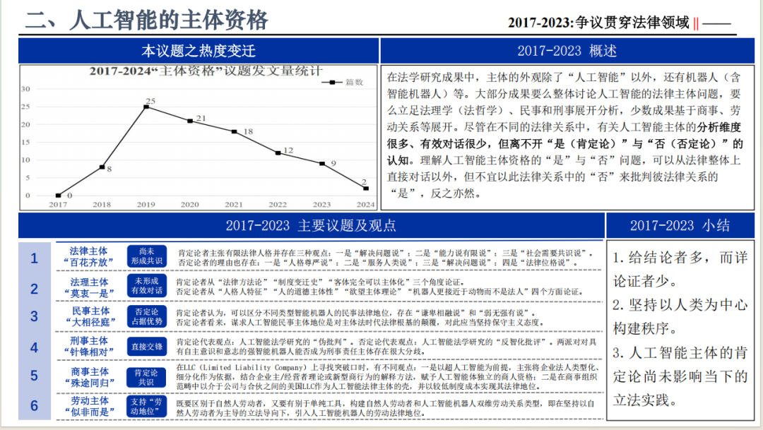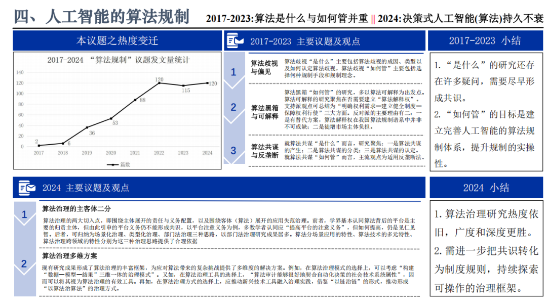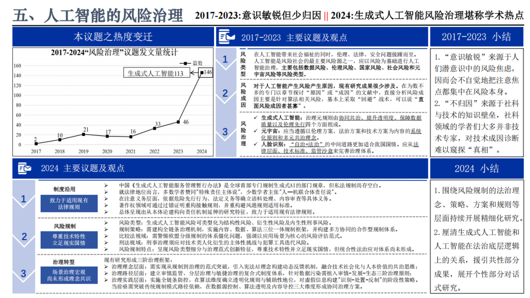 编者按:2025年3月16日,AI善治学术工作组、北京航空航天大学法学院、北京航空航天大学人文社会科学高等研究院在京举办了“AI善治论坛:探寻人工智能法治研究的真问题”学术论坛,该篇系会议发布的PPT,后续,本公众号将陆续发布7万余字的《中国人工智能法治研究报告(2017-2024)》纸质报告,敬请期待。