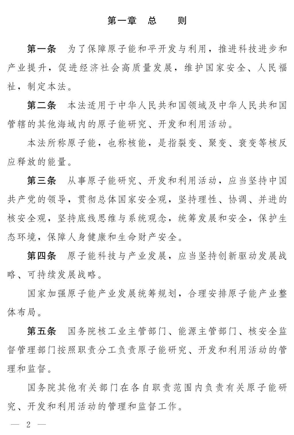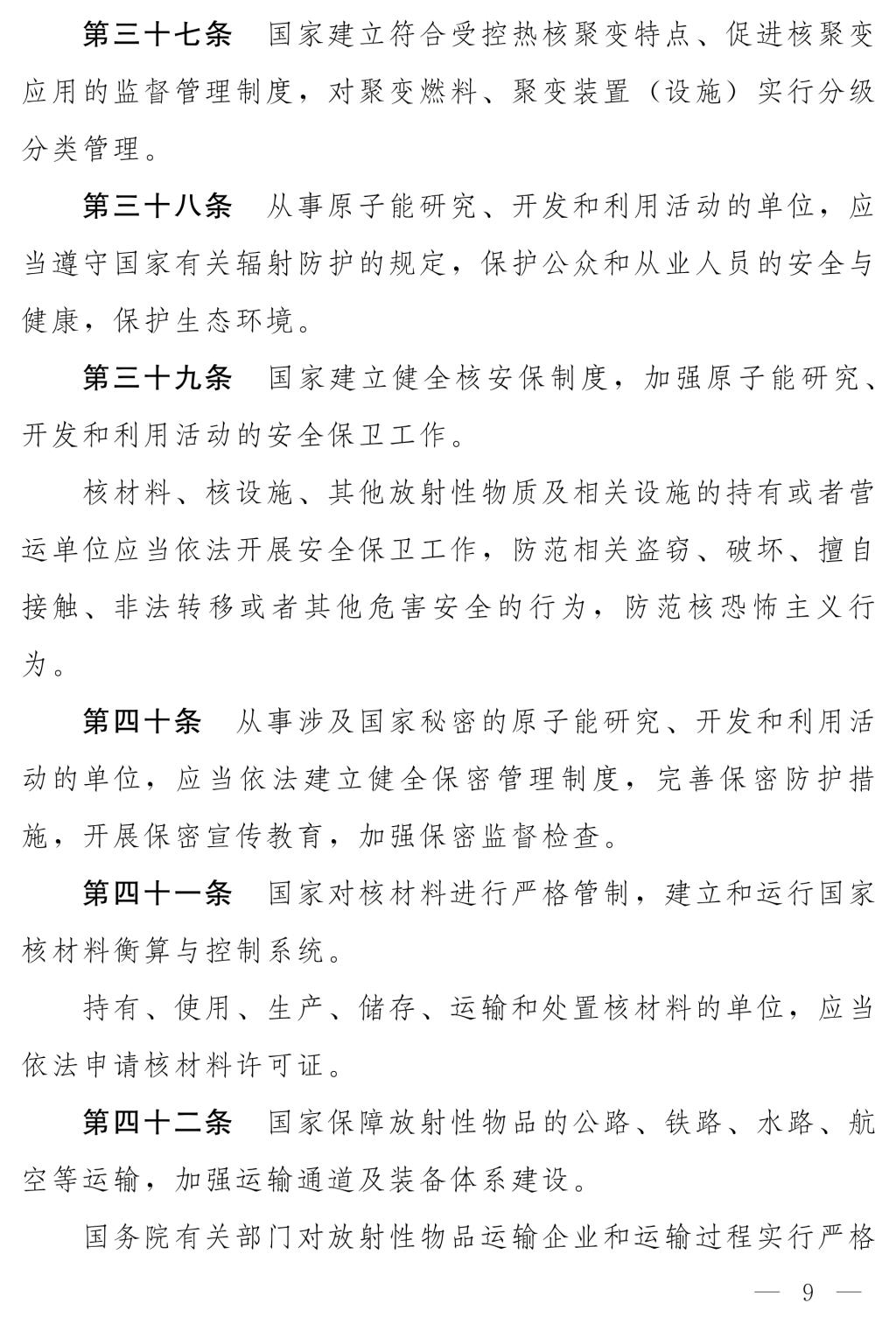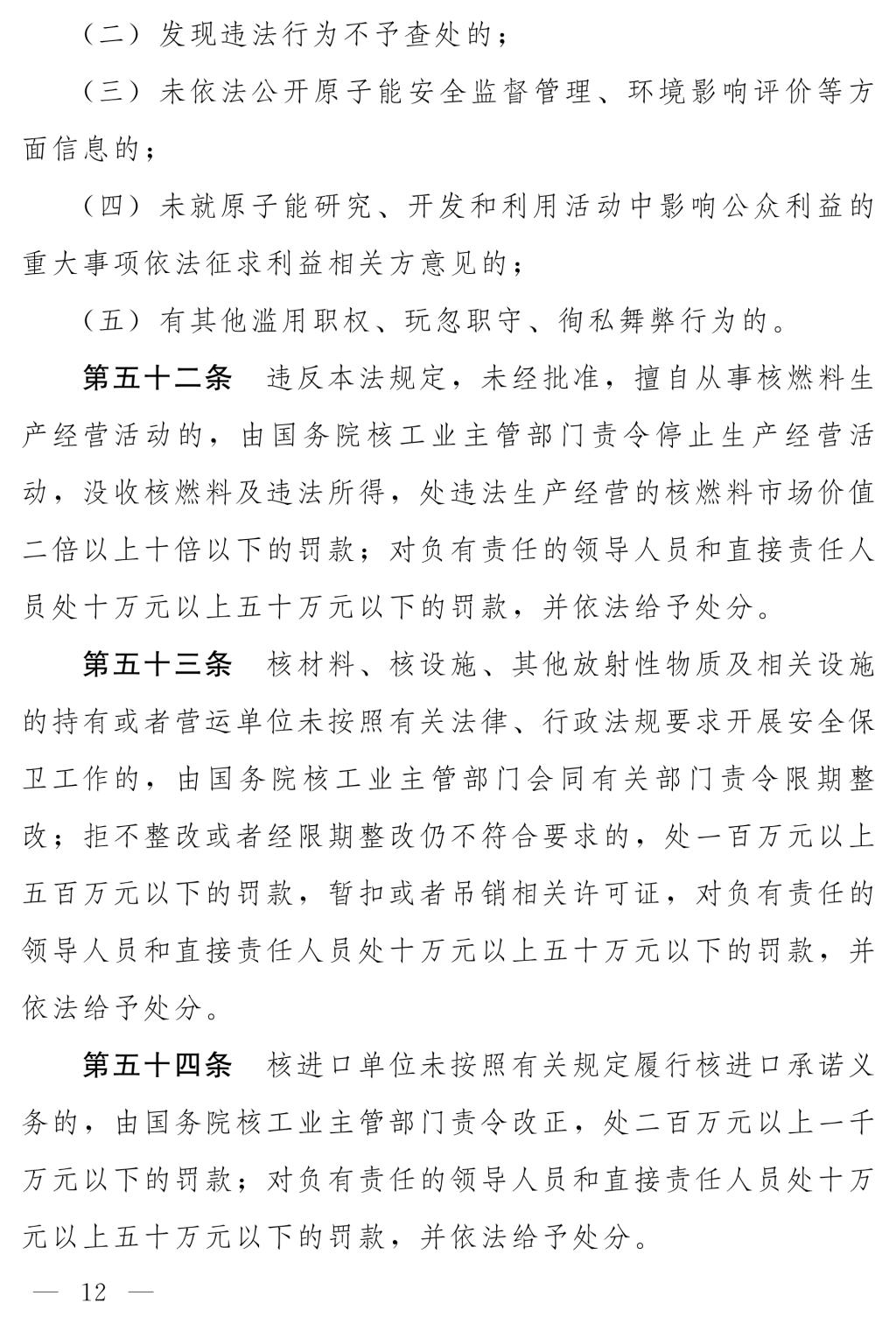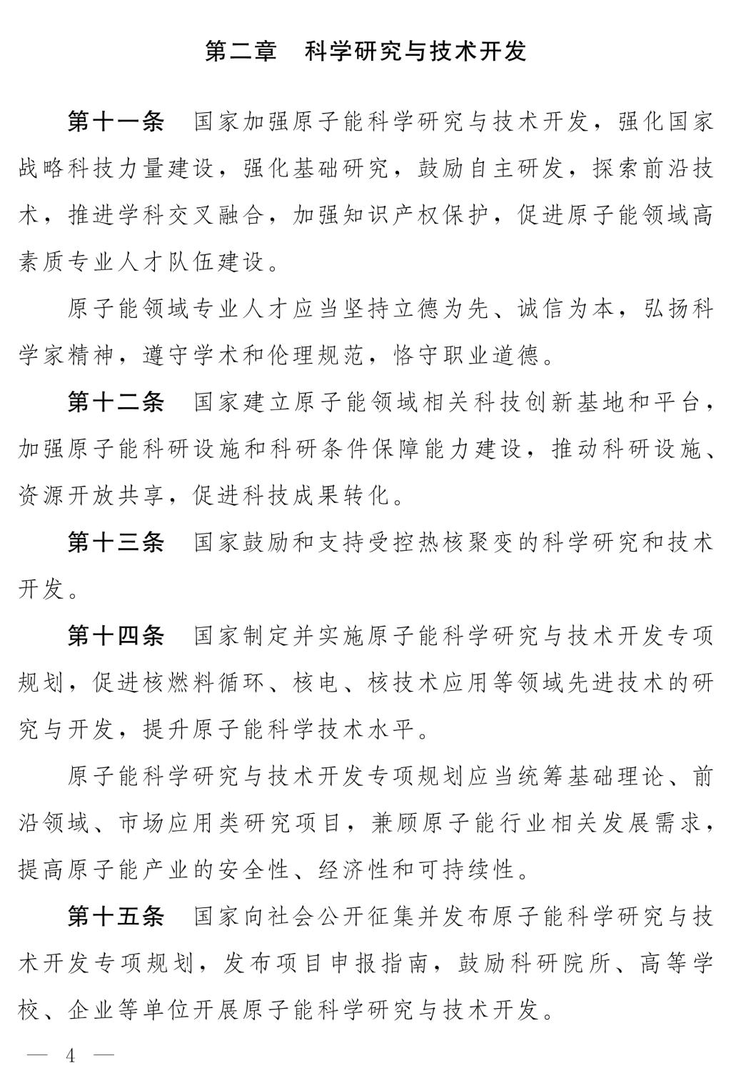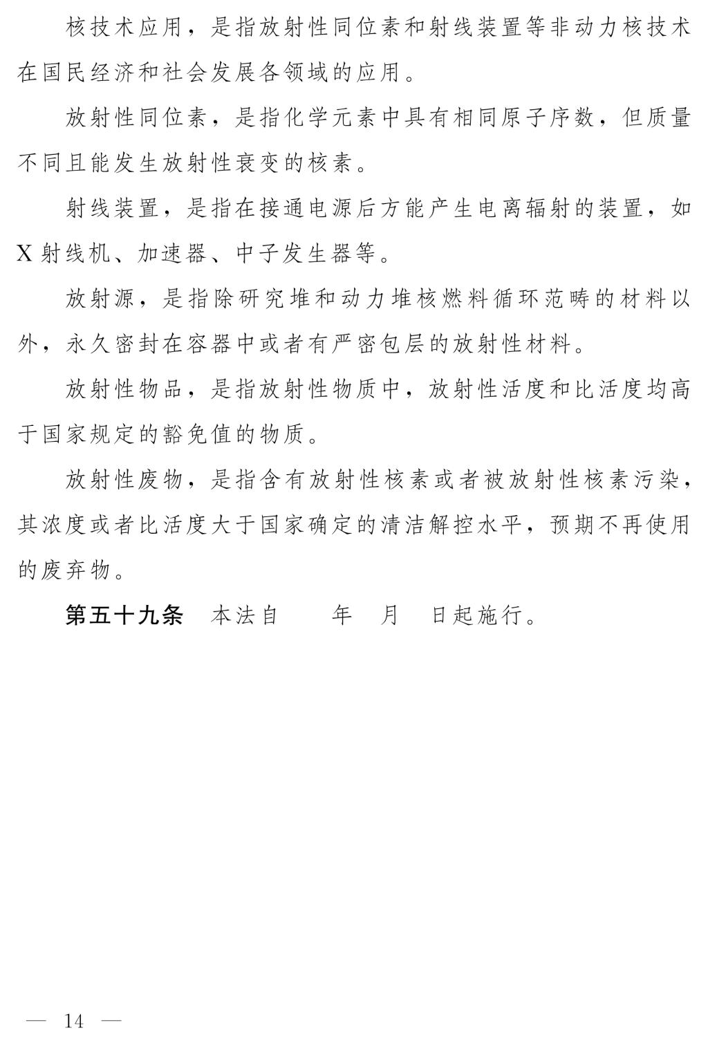 十四届全国人大常委会第十五次会议对《中华人民共和国原子能法(草案二次审议稿)》进行了审议。现将《中华人民共和国原子能法(草案二次审议稿)》公布,社会公众可以直接登录中国人大网(www.npc.gov.cn)或国家法律法规数据库(flk.npc.gov.cn)提出意见,也可以将意见寄送全国人大常委会法制工作委员会(北京市西城区前门西大街1号,邮编:100805。信封上请注明原子能法草案二次审议稿征求意见)。征求意见期限为30日。