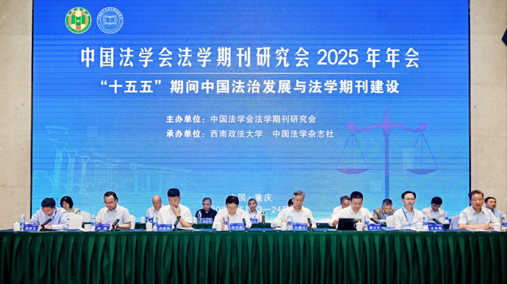 5月23日至24日,由中国法学会法学期刊研究会主办,西南政法大学、中国法学杂志社承办的中国法学会法学期刊研究会2025年年会在重庆召开。会议深入学习贯彻党的二十大和二十届二中、三中全会精神,以“‘十五五’期间中国法治发展与法学期刊建设”为主题,围绕“‘十五五’期间中国法学期刊高质量发展”“党的二十届三中全会精神的研究阐释”“习近平法治思想的丰富发展”“人工智能技术在法学期刊办刊中的应用”四个分议题进行深入研讨。中国法学会党组成员、副会长王振江出席会议并讲话。中国法学会法学期刊研究会会长张文显,西南政法大学校长林维,重庆市法学会党组成员、秘书长何国锋出席会议并致辞。中国法学会研究部二级巡视员王伟国出席会议。中国法学会法学期刊研究会会员、理事、学者代表及西南政法大学参会代表等260余人参加会议。