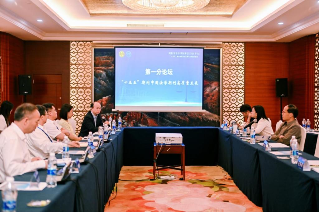 第一分论坛以“‘十五五’期间中国法学期刊高质量发展”为主题,由研究会副会长、《法律科学》主编杨建军和《政治与法律》主编姚建龙主持。《中国政法大学学报》主编曹明德以《期刊编辑的学术责任与担当》为题发言;《经贸法律评论》编辑部主任王乐兵以《〈经贸法律评论〉办刊思考》为题发言;《高等学校文科学术文摘》编辑部主任沈丽飞以《关注时代命题、回应法治实践》为题发言;北大法律信息网(北大法宝)副总编郭叶以《2024年法学核心期刊发文态势分析》为题发言;甘肃政法大学学术期刊部主任陈君武以《学术期刊增强出版路径》为题发言;《比较法研究》副主编丁洁琳以《〈比较法研究〉的质量坚守》为题发言;《苏州大学学报(法学版)》主编上官丕亮以《法学期刊高质量发展路径》为题发言;《法治研究》执行主编陈永强以《法学期刊对法学论文研究方法的重塑》为题发言;《民主与法制时报》总编辑强梅梅以《搭建期刊与作者良性桥梁》为题发言;南京大学法学院教授宋亚辉以《比较法向何处去》为题发言;中国知网期刊合作部副经理李晴以《法学学术发展现状的大数据分析》为题发言;《铁道警察学院学报》主编赵新彬以《公安期刊高质量发展路径》为题发言;《山西警察学院学报》副主编申巍以《公安期刊发展困境与破局》为题发言。