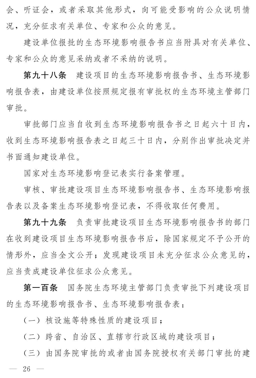 十四届全国人大常委会第十七次会议对《生态环境法典总则编(草案二次审议稿)》进行了审议。现将《生态环境法典总则编(草案二次审议稿)》公布,社会公众可以直接登录中国人大网(www.npc.gov.cn)或国家法律法规数据库(flk.npc.gov.cn)提出意见,也可以将意见寄送全国人大常委会法制工作委员会(北京市西城区前门西大街1号,邮编:100805。信封上请注明生态环境法典总则编草案二次审议稿征求意见)。征求意见期限为30日。