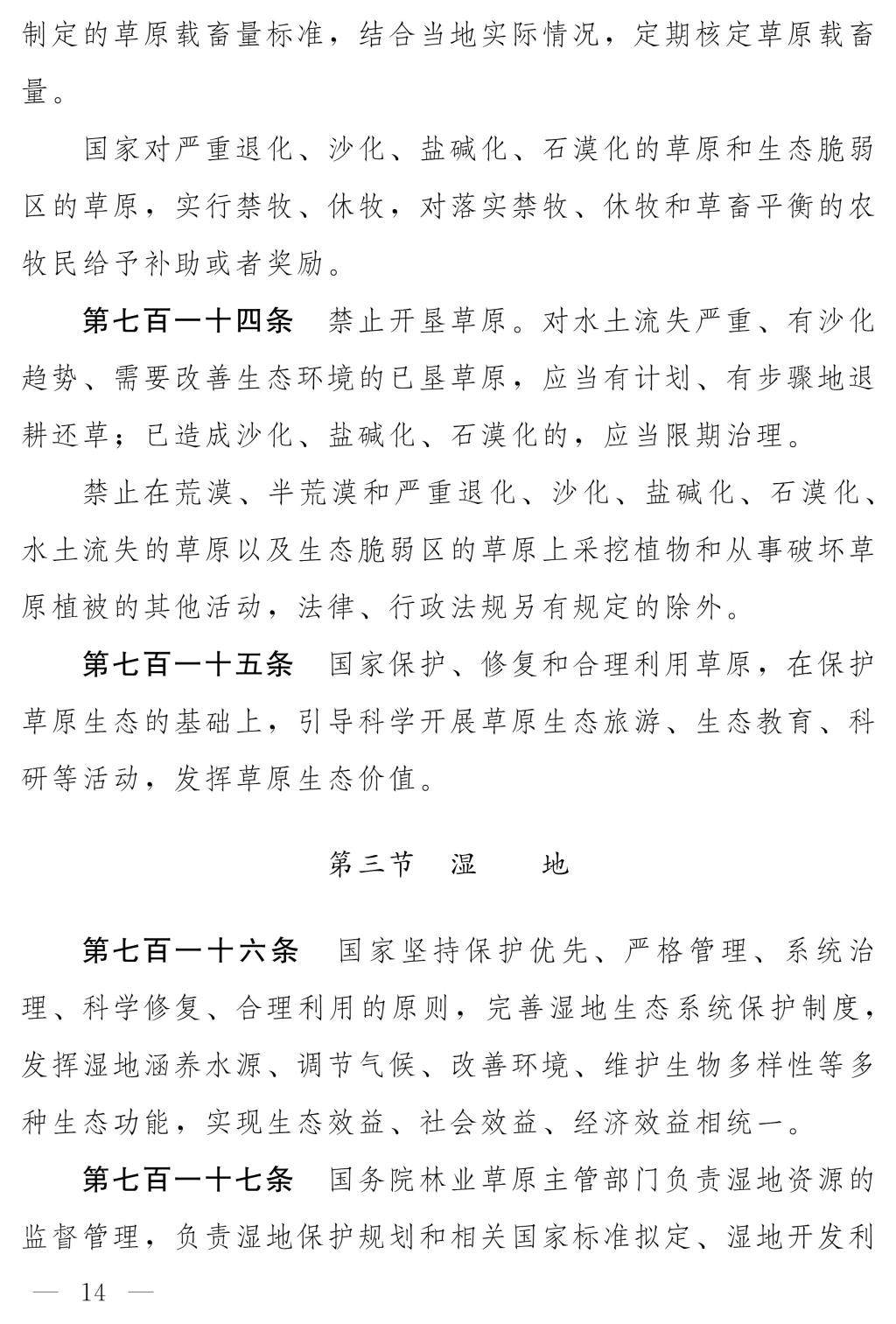 十四届全国人大常委会第十七次会议对《生态环境法典生态保护编(草案二次审议稿)》进行了审议。现将《生态环境法典生态保护编(草案二次审议稿)》公布,社会公众可以直接登录中国人大网(www.npc.gov.cn)或国家法律法规数据库(flk.npc.gov.cn)提出意见,也可以将意见寄送全国人大常委会法制工作委员会(北京市西城区前门西大街1号,邮编:100805。信封上请注明生态环境法典生态保护编草案二次审议稿征求意见)。征求意见期限为30日。