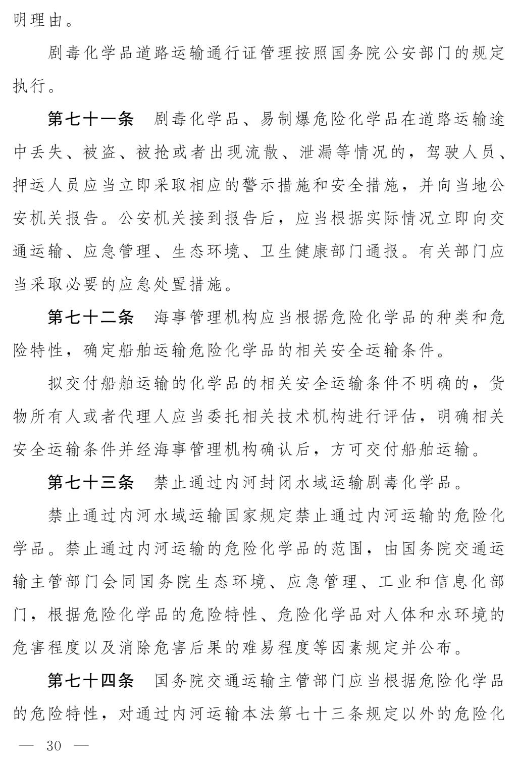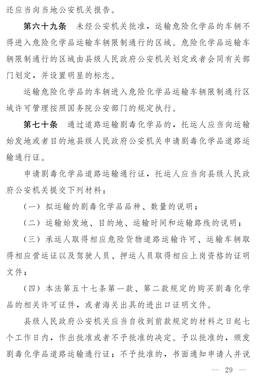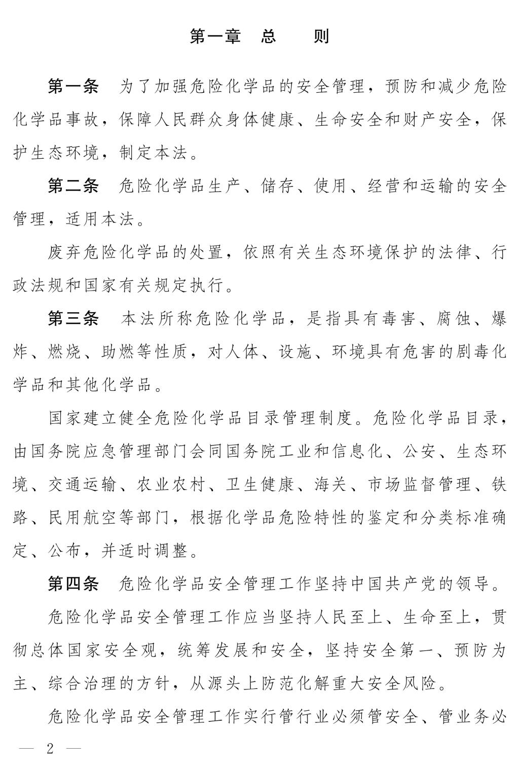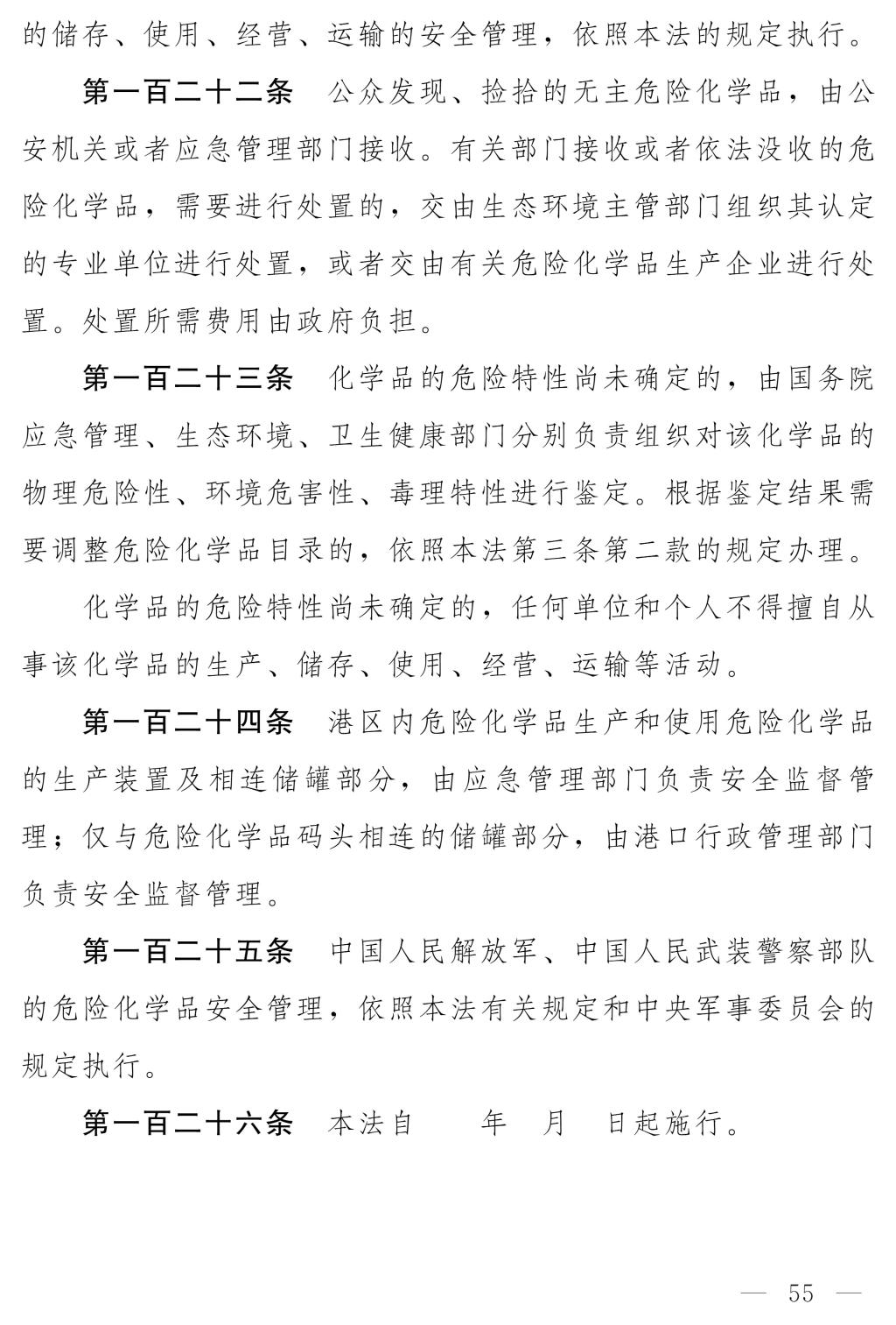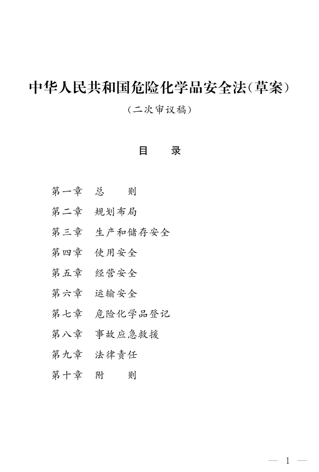 十四届全国人大常委会第十七次会议对《中华人民共和国危险化学品安全法(草案二次审议稿)》进行了审议。现将《中华人民共和国危险化学品安全法(草案二次审议稿)》公布,社会公众可以直接登录中国人大网(www.npc.gov.cn)或国家法律法规数据库(flk.npc.gov.cn)提出意见,也可以将意见寄送全国人大常委会法制工作委员会(北京市西城区前门西大街1号,邮编:100805。信封上请注明危险化学品安全法草案二次审议稿征求意见)。征求意见期限为30日。