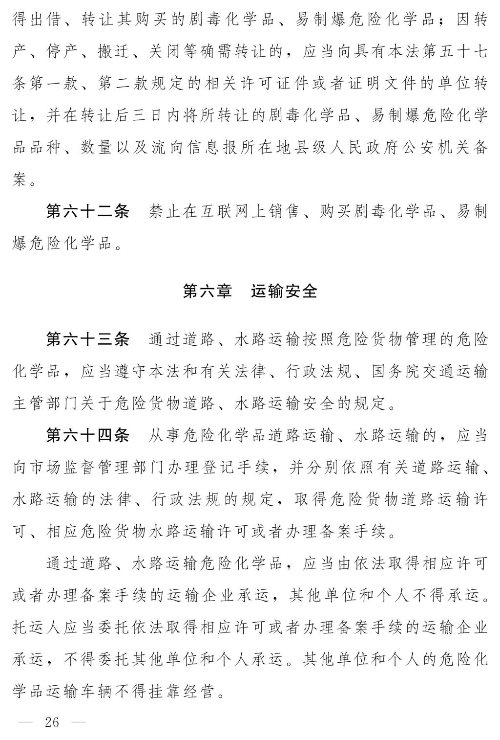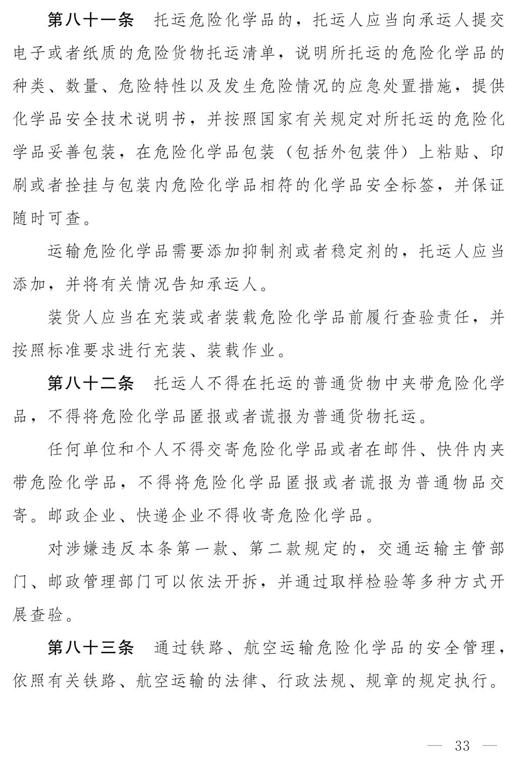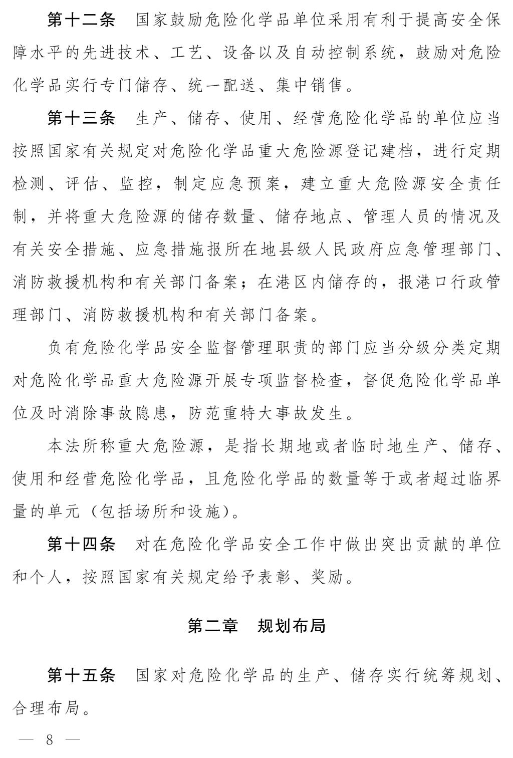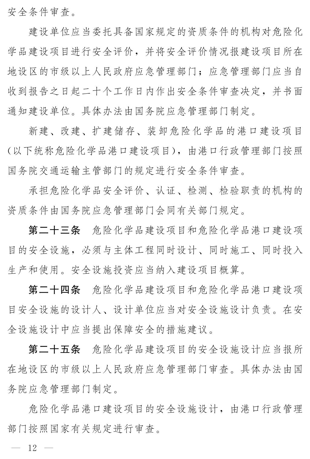 十四届全国人大常委会第十七次会议对《中华人民共和国危险化学品安全法(草案二次审议稿)》进行了审议。现将《中华人民共和国危险化学品安全法(草案二次审议稿)》公布,社会公众可以直接登录中国人大网(www.npc.gov.cn)或国家法律法规数据库(flk.npc.gov.cn)提出意见,也可以将意见寄送全国人大常委会法制工作委员会(北京市西城区前门西大街1号,邮编:100805。信封上请注明危险化学品安全法草案二次审议稿征求意见)。征求意见期限为30日。