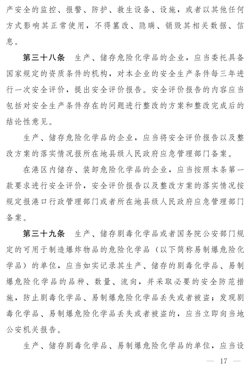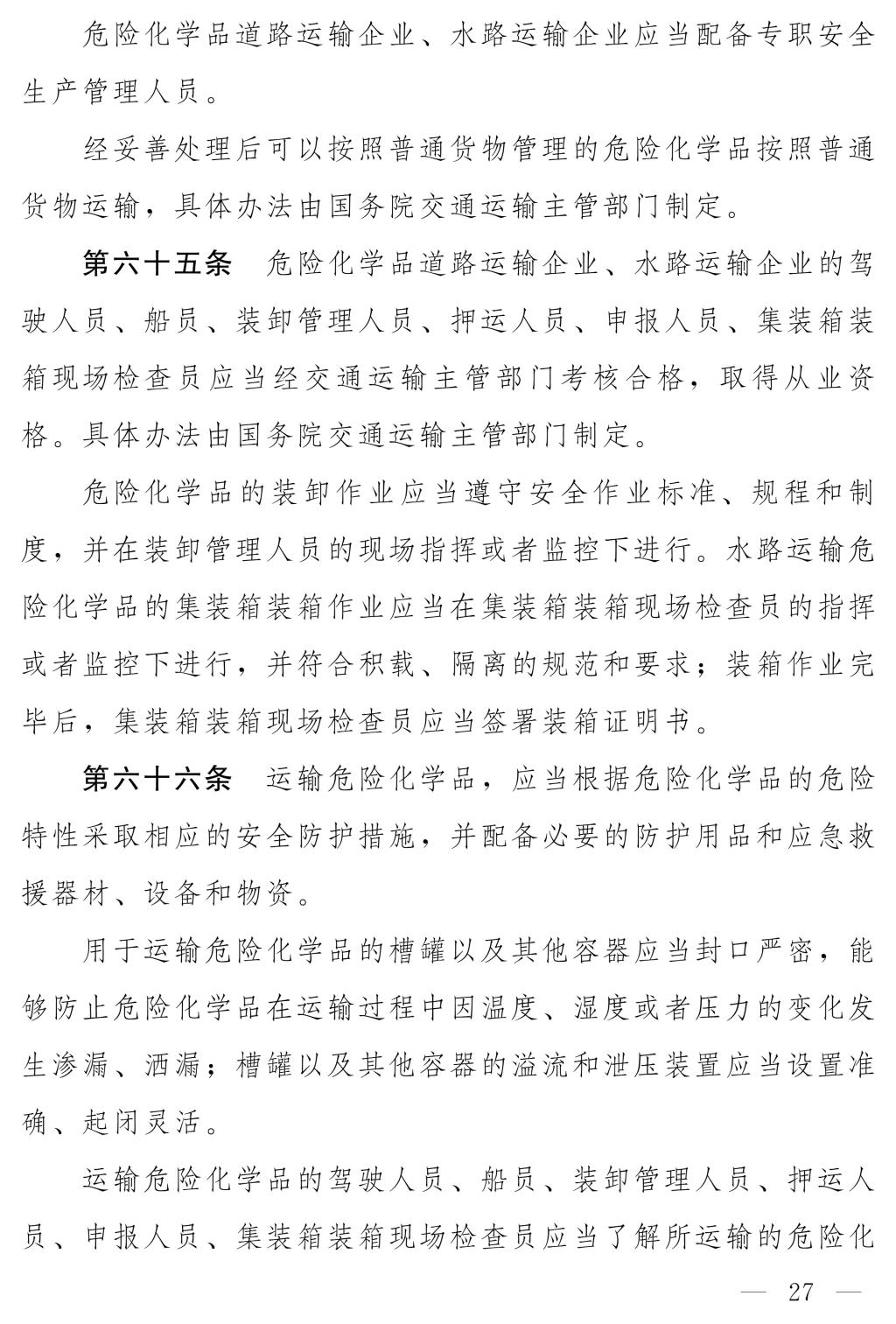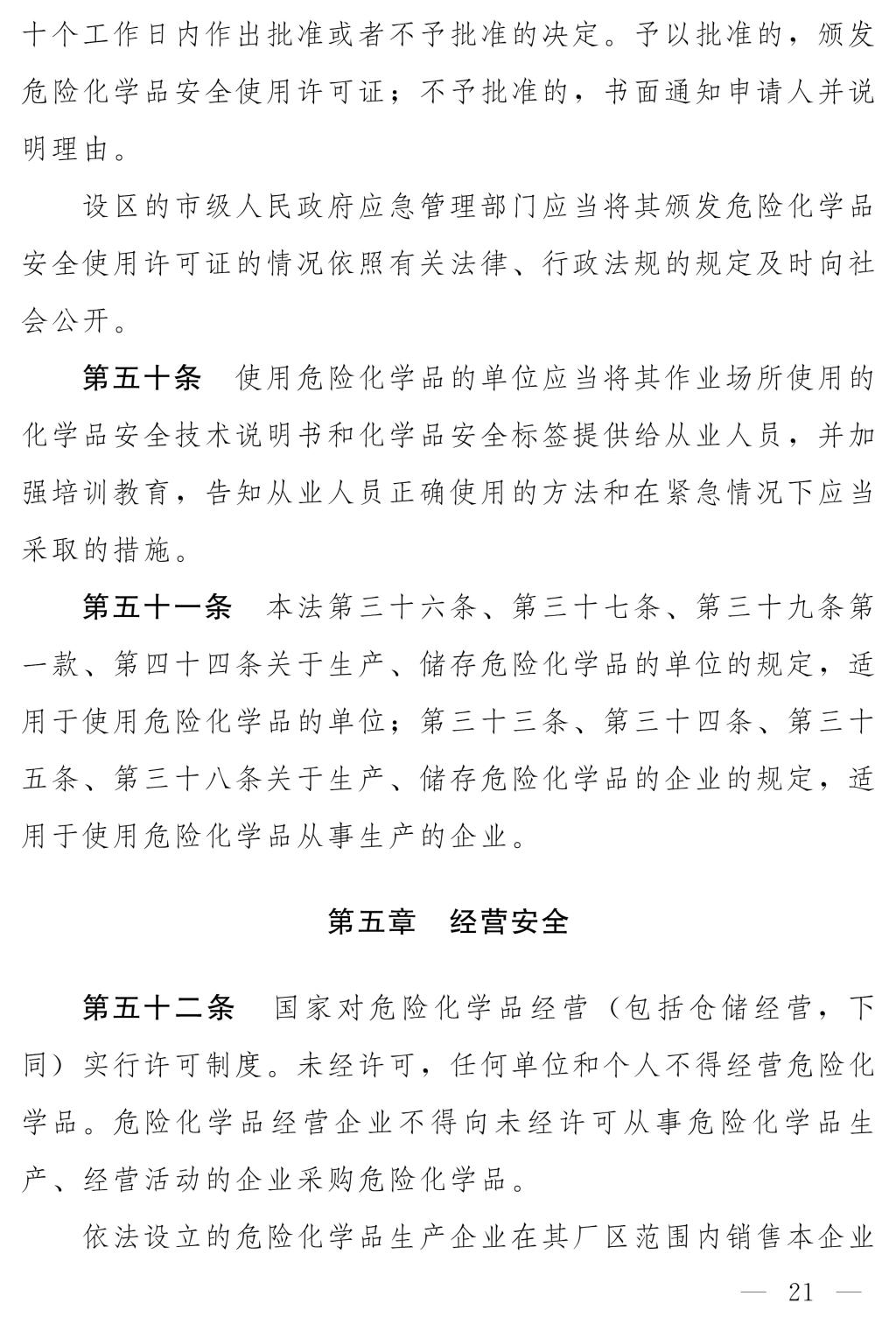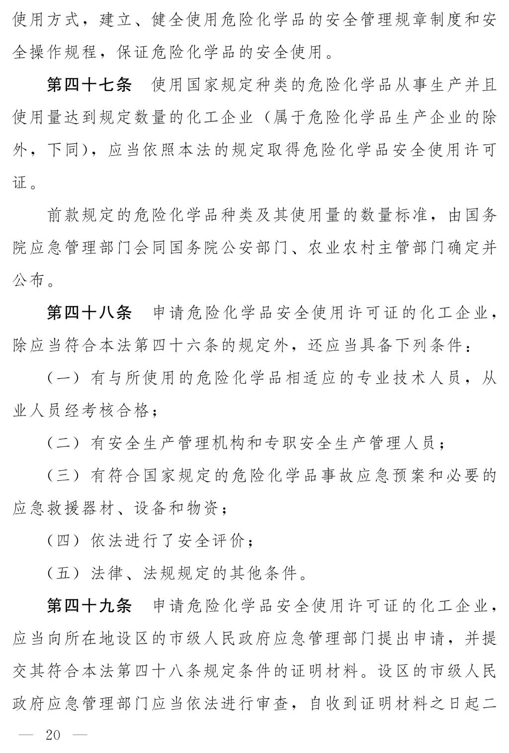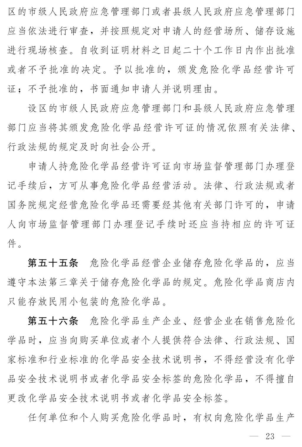 十四届全国人大常委会第十七次会议对《中华人民共和国危险化学品安全法(草案二次审议稿)》进行了审议。现将《中华人民共和国危险化学品安全法(草案二次审议稿)》公布,社会公众可以直接登录中国人大网(www.npc.gov.cn)或国家法律法规数据库(flk.npc.gov.cn)提出意见,也可以将意见寄送全国人大常委会法制工作委员会(北京市西城区前门西大街1号,邮编:100805。信封上请注明危险化学品安全法草案二次审议稿征求意见)。征求意见期限为30日。