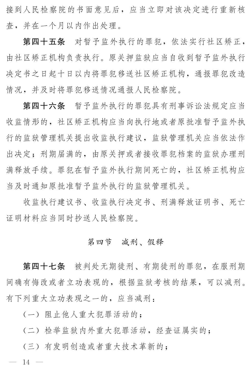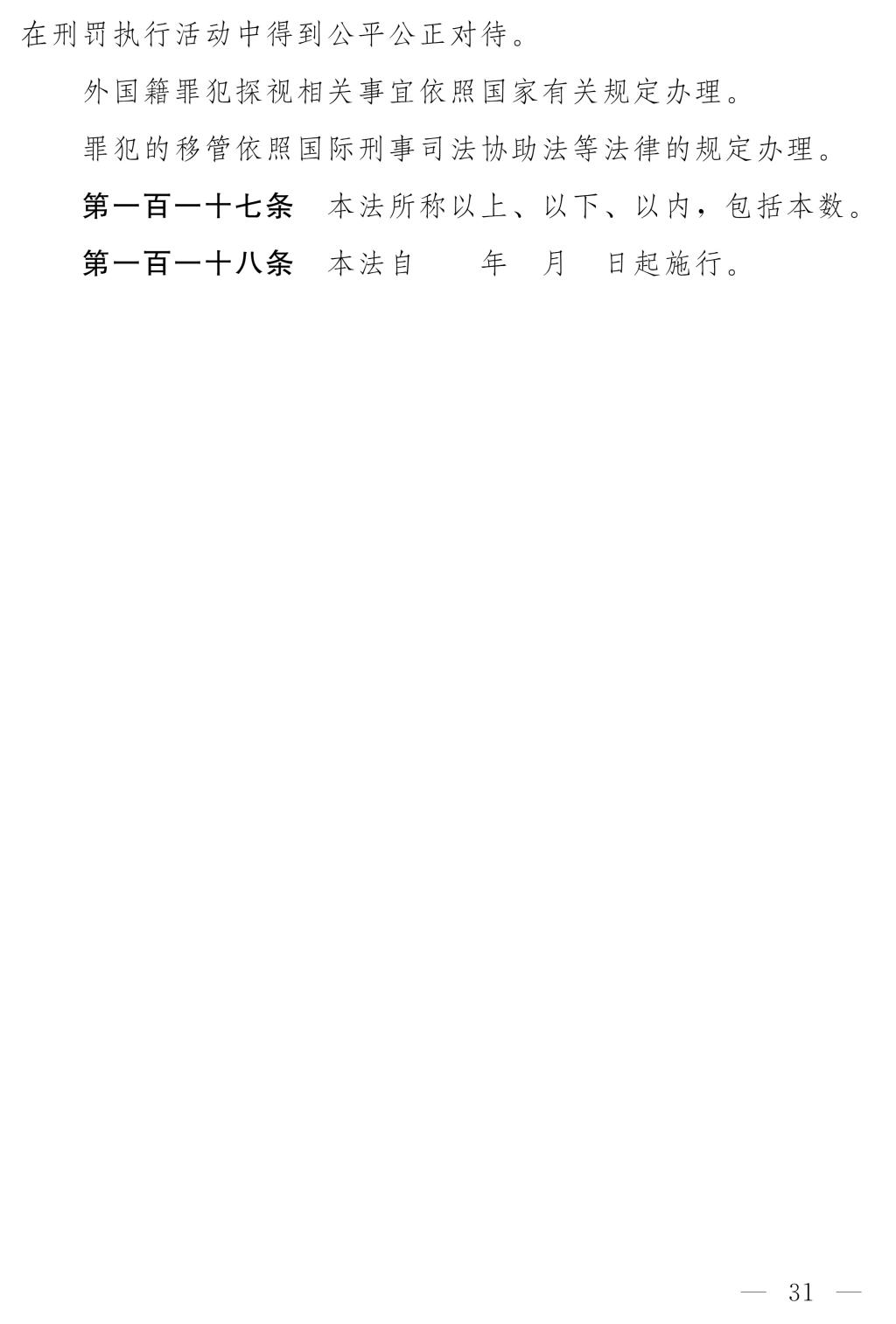 十四届全国人大常委会第十七次会议对《中华人民共和国监狱法(修订草案二次审议稿)》进行了审议。现将《中华人民共和国监狱法(修订草案二次审议稿)》公布,社会公众可以直接登录中国人大网(www.npc.gov.cn)或国家法律法规数据库(flk.npc.gov.cn)提出意见,也可以将意见寄送全国人大常委会法制工作委员会(北京市西城区前门西大街1号,邮编:100805。信封上请注明监狱法修订草案二次审议稿征求意见)。征求意见期限为30日。