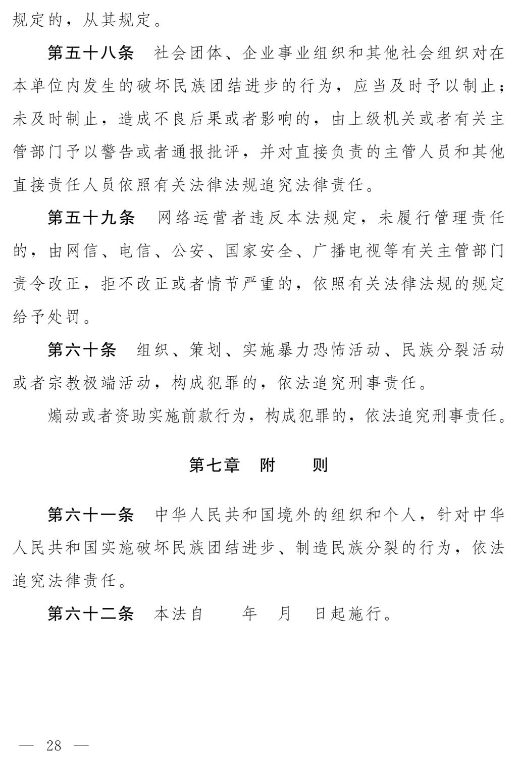 十四届全国人大常委会第十七次会议对《中华人民共和国民族团结进步促进法(草案)》进行了审议。现将《中华人民共和国民族团结进步促进法(草案)》公布,社会公众可以直接登录中国人大网(www.npc.gov.cn)或国家法律法规数据库(flk.npc.gov.cn)提出意见,也可以将意见寄送全国人大常委会法制工作委员会(北京市西城区前门西大街1号,邮编:100805。信封上请注明民族团结进步促进法草案征求意见)。征求意见期限为30日。