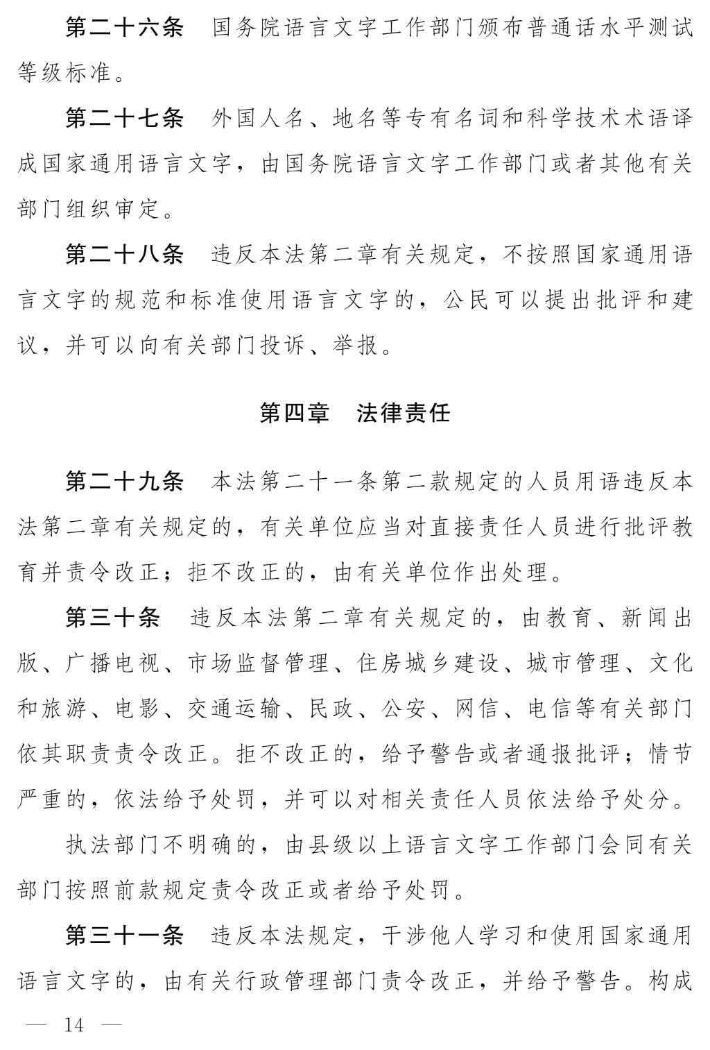 十四届全国人大常委会第十七次会议对《中华人民共和国国家通用语言文字法(修订草案)》进行了审议。现将《中华人民共和国国家通用语言文字法(修订草案)》公布,社会公众可以直接登录中国人大网(www.npc.gov.cn)或国家法律法规数据库(flk.npc.gov.cn)提出意见,也可以将意见寄送全国人大常委会法制工作委员会(北京市西城区前门西大街1号,邮编:100805。信封上请注明国家通用语言文字法修订草案征求意见)。征求意见期限为30日。