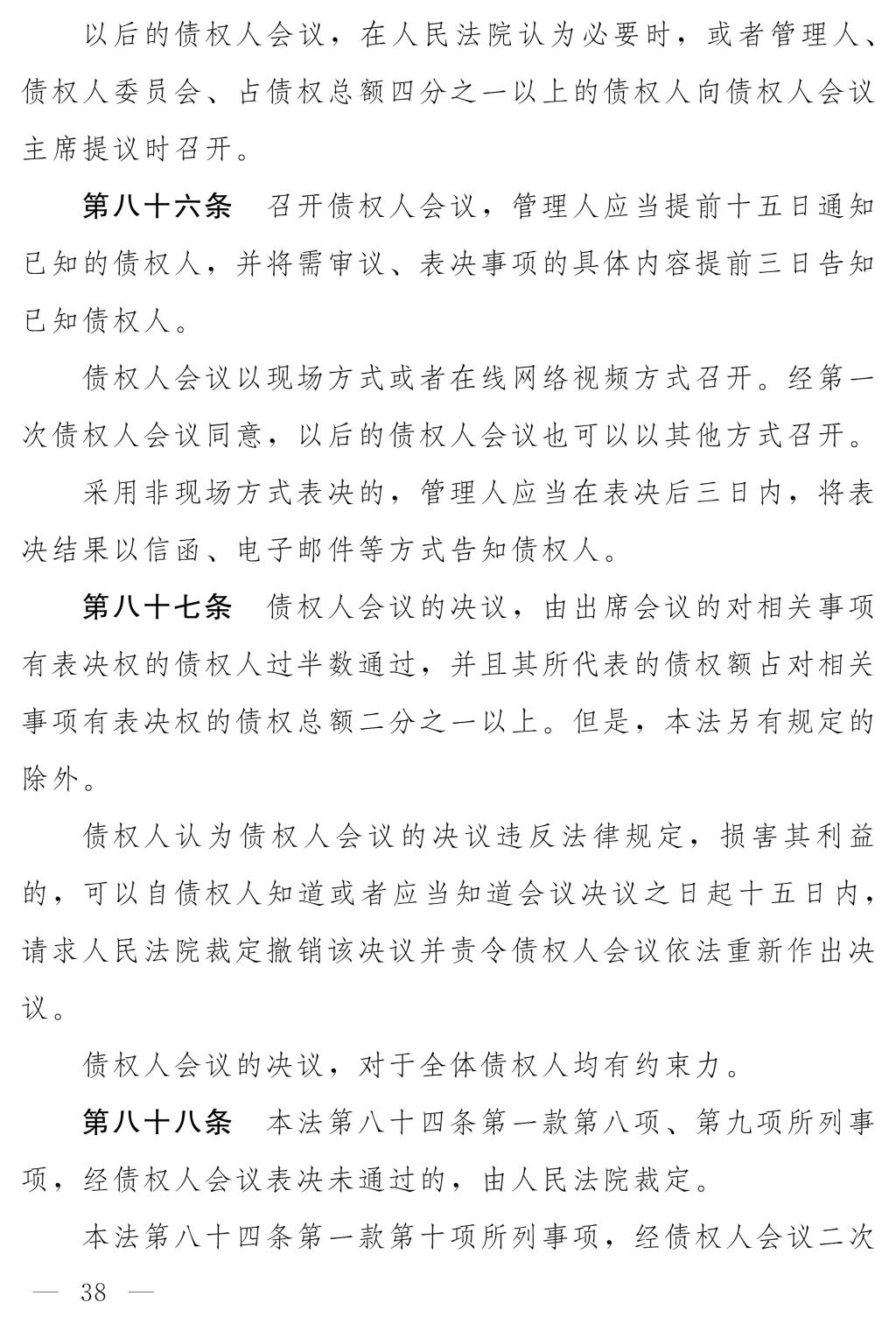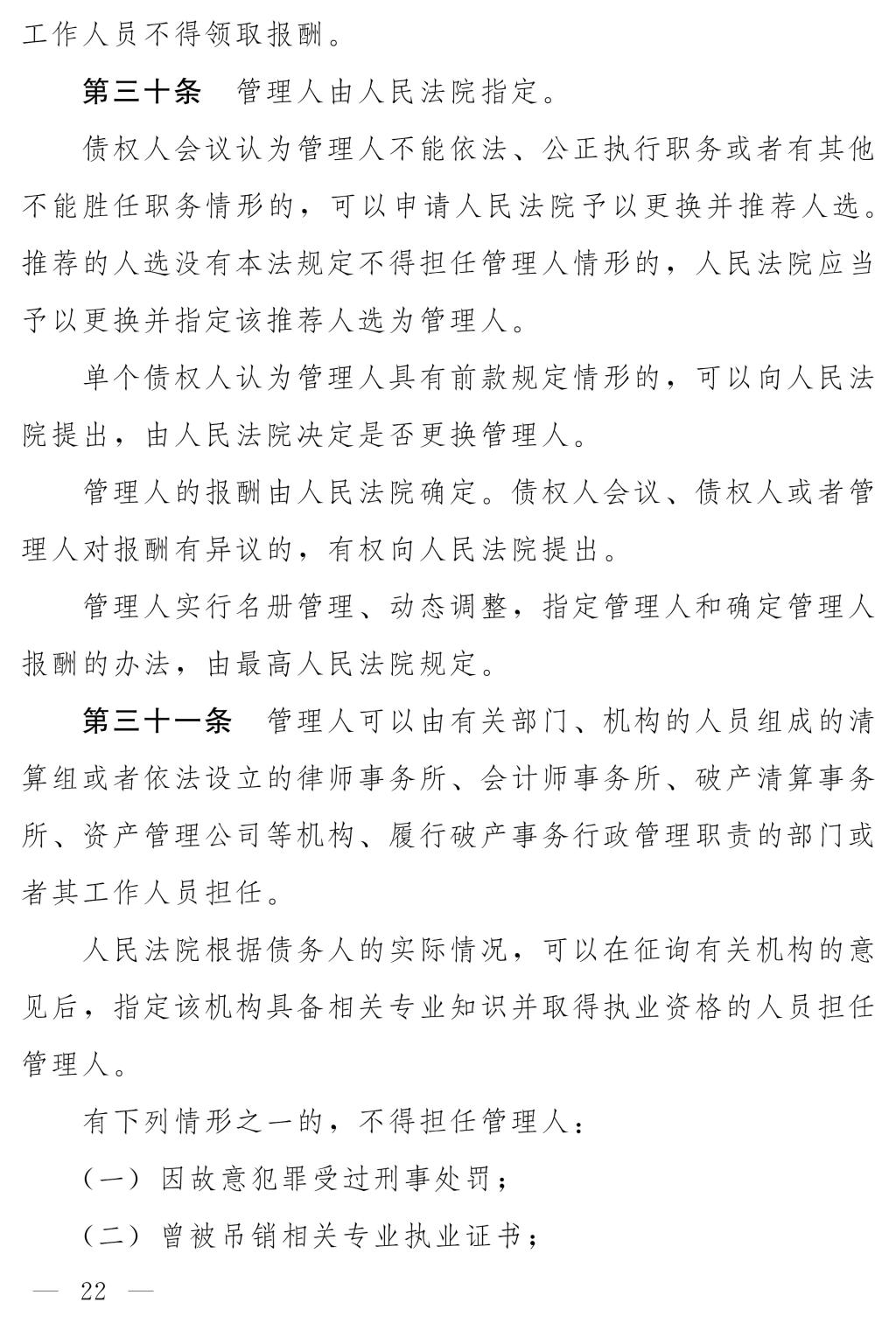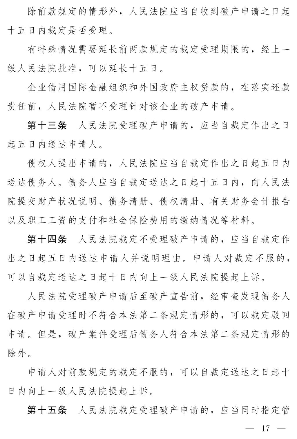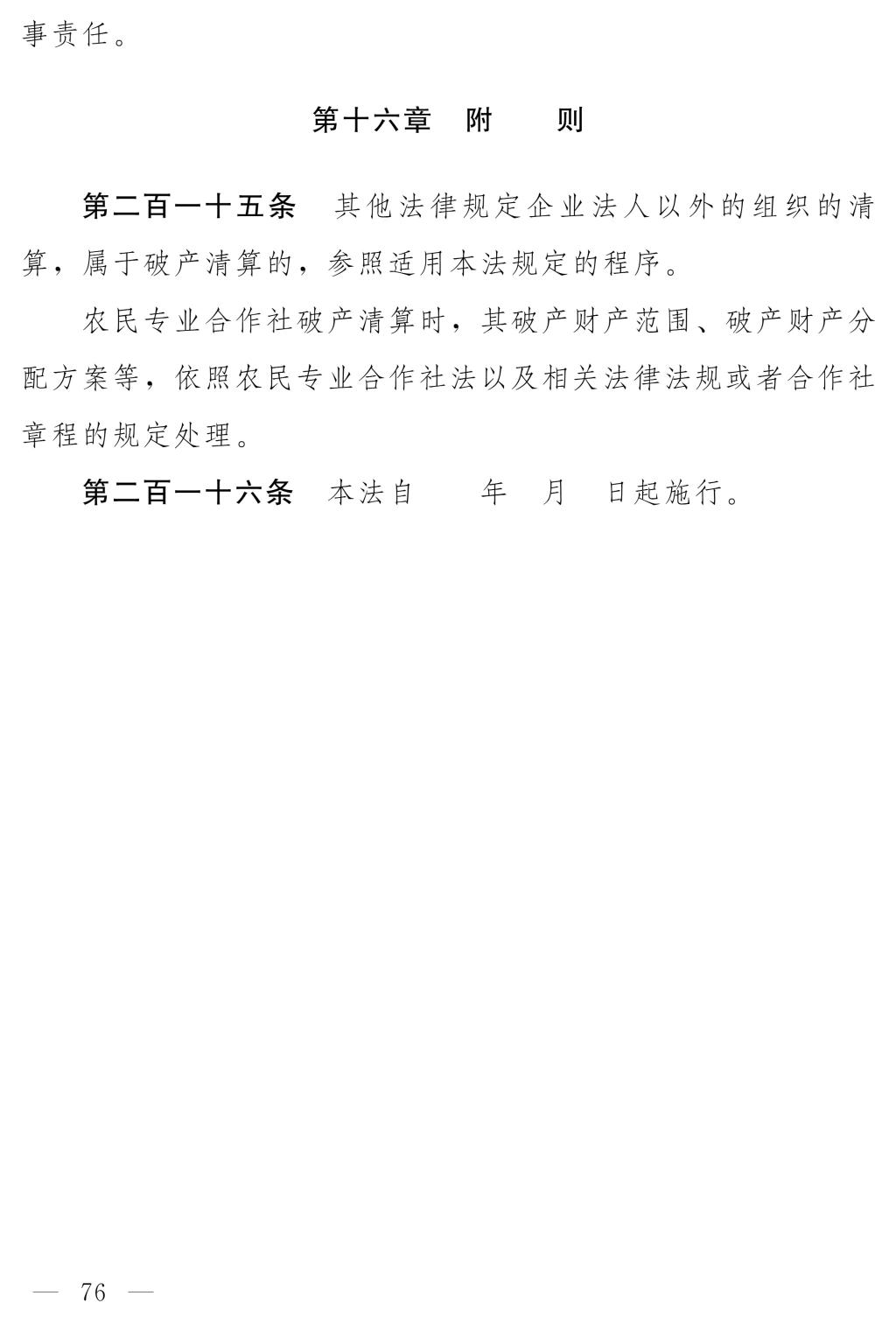 十四届全国人大常委会第十七次会议对《中华人民共和国企业破产法(修订草案)》进行了审议。现将《中华人民共和国企业破产法(修订草案)》公布,社会公众可以直接登录中国人大网(www.npc.gov.cn)或国家法律法规数据库(flk.npc.gov.cn)提出意见,也可以将意见寄送全国人大常委会法制工作委员会(北京市西城区前门西大街1号,邮编:100805。信封上请注明企业破产法修订草案征求意见)。征求意见期限为30日。