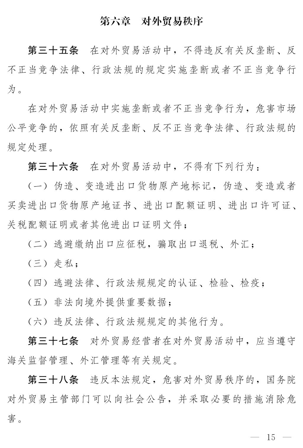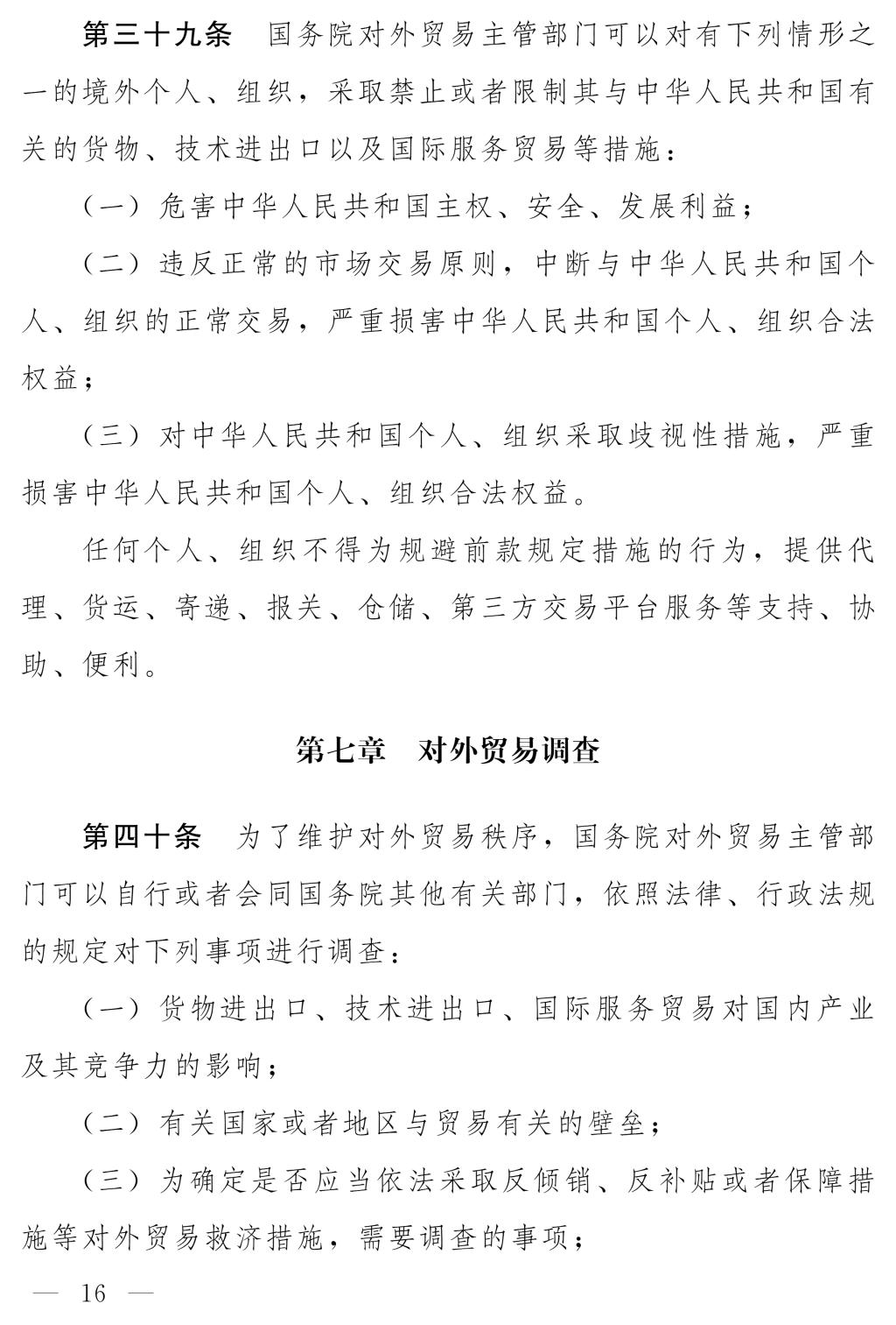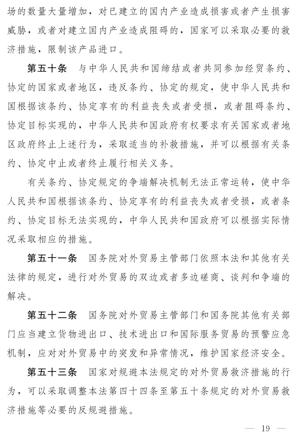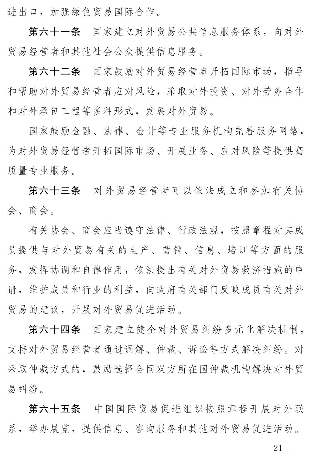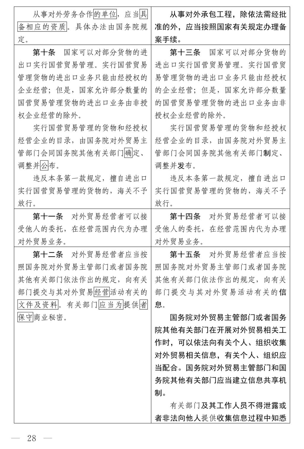 十四届全国人大常委会第十七次会议对《中华人民共和国对外贸易法(修订草案)》进行了审议。现将《中华人民共和国对外贸易法(修订草案)》公布,社会公众可以直接登录中国人大网(www.npc.gov.cn)或国家法律法规数据库(flk.npc.gov.cn)提出意见,也可以将意见寄送全国人大常委会法制工作委员会(北京市西城区前门西大街1号,邮编:100805。信封上请注明对外贸易法修订草案征求意见)。征求意见期限为30日。