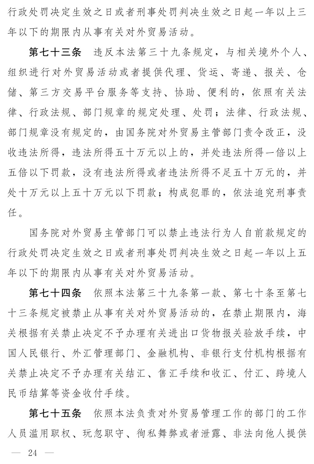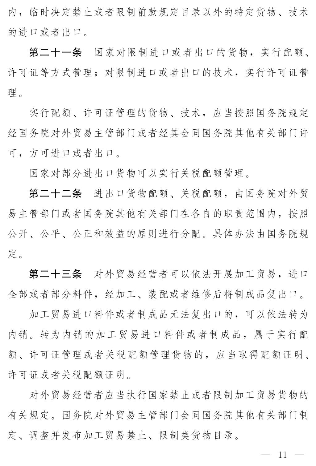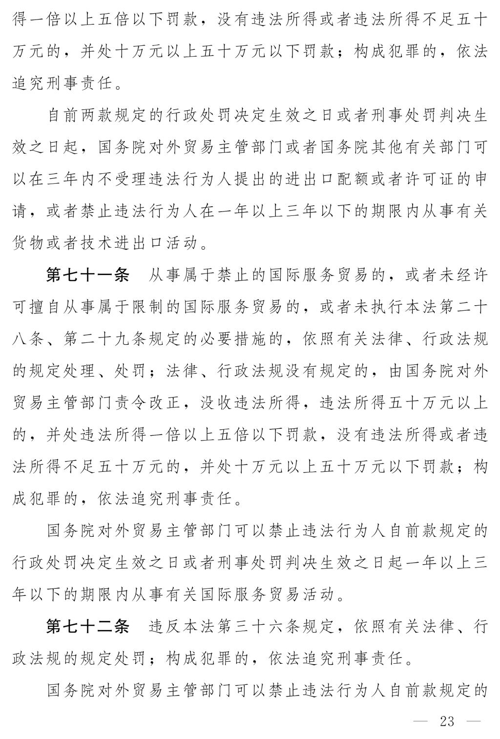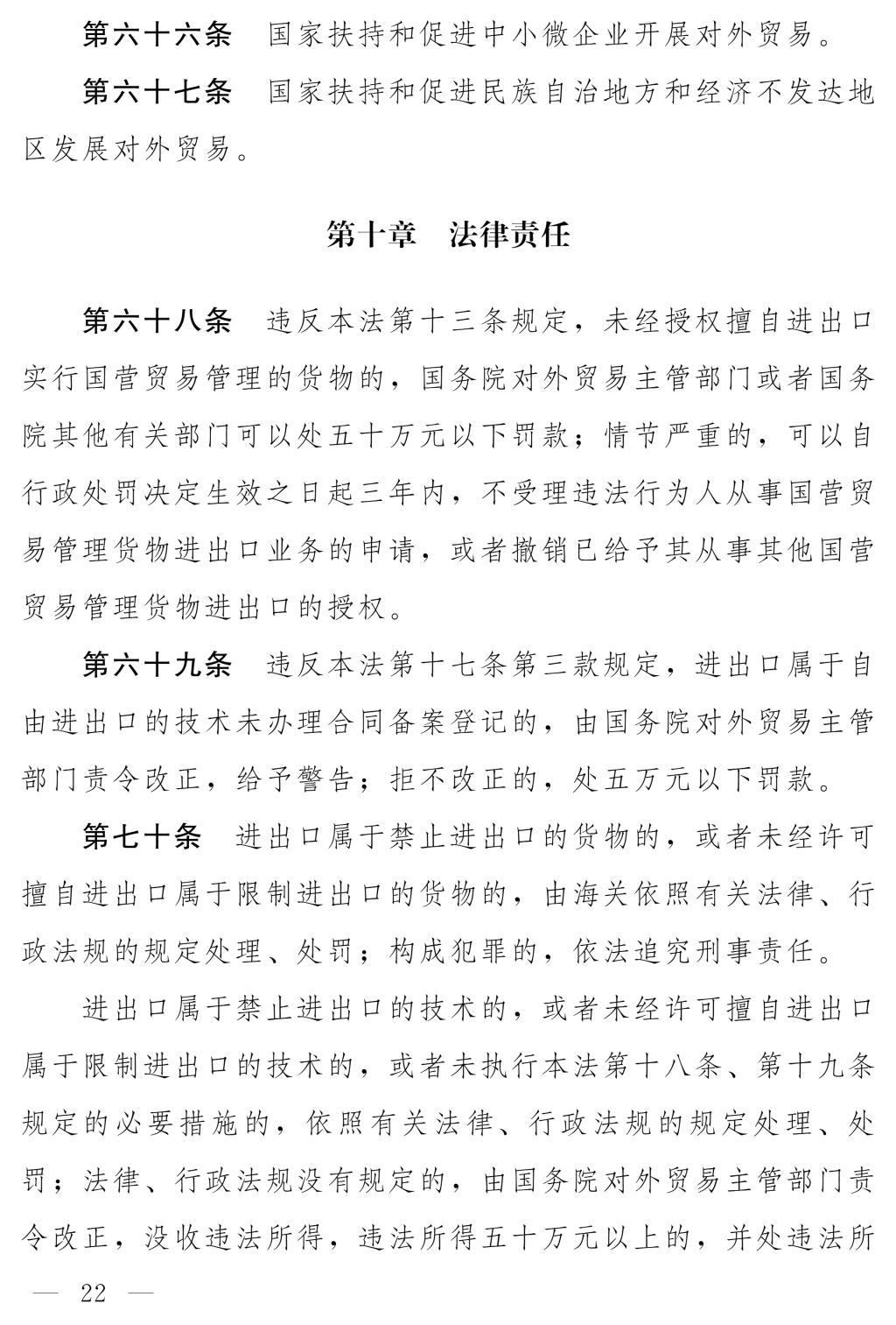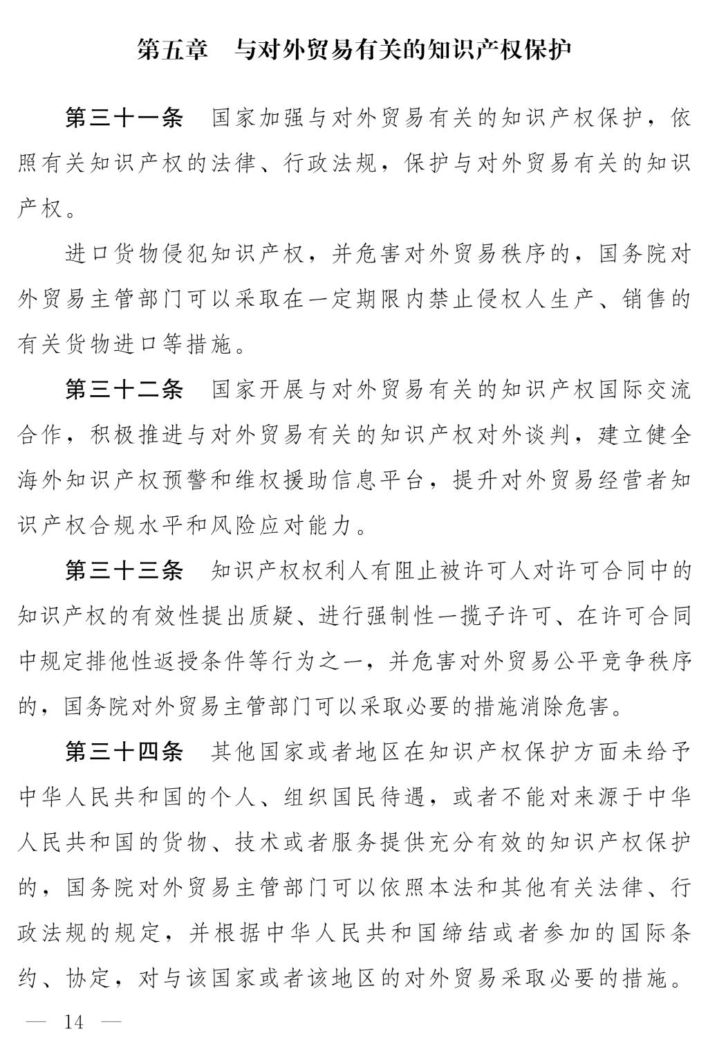 十四届全国人大常委会第十七次会议对《中华人民共和国对外贸易法(修订草案)》进行了审议。现将《中华人民共和国对外贸易法(修订草案)》公布,社会公众可以直接登录中国人大网(www.npc.gov.cn)或国家法律法规数据库(flk.npc.gov.cn)提出意见,也可以将意见寄送全国人大常委会法制工作委员会(北京市西城区前门西大街1号,邮编:100805。信封上请注明对外贸易法修订草案征求意见)。征求意见期限为30日。