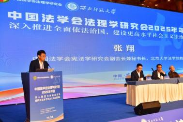 中国法学会宪法学研究会副会长兼秘书长、北京大学法学院教授张翔致辞。张翔副会长对中国法学会法理学研究会成立四十周年表达热烈的祝贺,在中国特色哲学社会科学的学科体系中,法理学和宪法学是有着密切联系的学科。法理学研究会和宪法学研究会是合作紧密、学术友谊深厚的兄弟研究会,在中国法治建设和法学发展的诸多重大意义上有着多层次的深度合作、多次合作与沟通,极大繁荣了中国法学的基础理论研究,共同回应了中国法治建设的实践需求。张翔老师汇报和分享了宪法学研究工作的一些情况和经验,以期与法理学研究会相互学习、相互借鉴。宪法研究会自成立以来坚持正确的政治保障和理论导向,推动宪法学的发展和宪法相关法律制度的健全,助力宪法的全面实施,推动宪法学国际交往。宪法研究会是最早成立党支部的研究会,作为中国法学会加强支部建设的试点单位,宪法研究会严格按照制度办事,形成了工作规范的制度体系。宪法研究会重视宪法学研究队伍的建设,为青年宪法学者的成长创造条件、提供机会,为全面落实宪法在治国理政中的重要作用提供学术支撑,为全面推进依法治国、建设社会主义法治国家做出更大贡献。