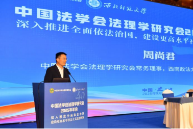 中国法学会法理学研究会常务理事、西南政法大学副校长周尚君致辞。周尚君副校长表示,近四十年中国法理学以构建独立学术范畴为目标,推动法学理论与法治实践互动,深度融入中国式现代化,实现研究主题、能力与队伍的系统性提升,并通过国际对话展现法理强国的学术自觉。1988年长春研讨会成为关键节点,张文显等学者以“权利义务”重构法学理论,终结阶级斗争范式影响。孙国华、刘作翔等拓展权利本位论至范式转型,形成理论变革,为法学提供独立分析框架,推动学科摆脱“幼稚化”。1992年后与市场经济法治结合,成为法学现代化支撑。学界反思既往“接轨苏联、美欧”的局限,认识到法学“西医化”与本土法律文化“中医属性”的张力,主张以传统法律文化、当代法治实践构建实践主体性法理体系。针对传统法理学脱离实践的困境,强调实证分析具体法治问题,实现与部门法学贯通。基于人类法治文明贡献维度,提出构建兼具中国特色与共同价值的法理体系,以国际化话语回应法治根本命题。当前中国法理学需融合“三化”,以中华法系传统、法治实践提炼原创概念,通过实证研究构建法理模型,在全球治理中发展回应人类法治难题的理论,推动法学大国向强国跨越,为法治现代化提供学理支撑。