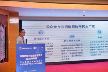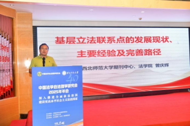 曾庆辉教授的报告系统阐述了我国基层立法联系点的发展历程、功能定位、现实困境与完善路径。基层立法联系点发源于2002年甘肃临洮,是践行“全过程人民民主”理念、推进立法民主化与科学化的重要制度安排,其功能涵盖立法项目征集、草案意见征求、立法调研评估及普法宣传等环节,并已形成国家、省、市多层级网络体系。在此基础上,他指出当前基层立法联系点面临以下困境:一是功能定位在法律层面尚未完全明确,存在作用边界模糊与实施效能不均的问题;二是人员多以兼职为主,专业素质与积极性参差不齐,经费保障不足;三是公众认知度有限,参与多依赖动员,主动介入机制欠缺;四是意见转化机制不健全,“民意”至“法意”的提炼与反馈环节较为薄弱。为进一步发挥其制度效能,他建议推动立法明确联系点的功能与地位,加强人员队伍建设与经费支持,构建规范化、透明化的意见征集、转化与反馈机制。同时,应当加大社会宣传,提升公众认知与参与主动性,并深化理论研究,为实践发展提供学理支撑,使基层立法联系点真正成为法治建设与民主实践的重要载体。