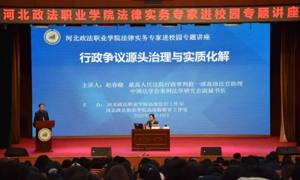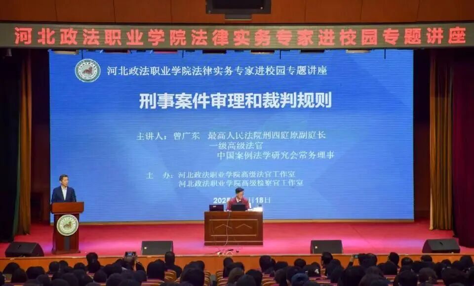 三位专家分别在学校礼堂为师生举办专题讲座。曾广东的授课题目是《刑事案件审理和裁判规则》,赵春晓的授课题目是《行政争议源头治理与实质化解》,冯小光的授课题目是《构建“大调解”新格局:中国特色矛盾纠纷化解机制全景探析》,内容涵盖刑法、民法和行政法领域,专家们结合丰富的审判经验,运用大量真实案例,对司法实践中的痛点难点进行了讲解。师生们听完讲座后积极向三位专家提问,专家们结合多年实务工作经验和深厚的理论功底,深入浅出地为师生们答疑解惑,取得了良好的互动效果。