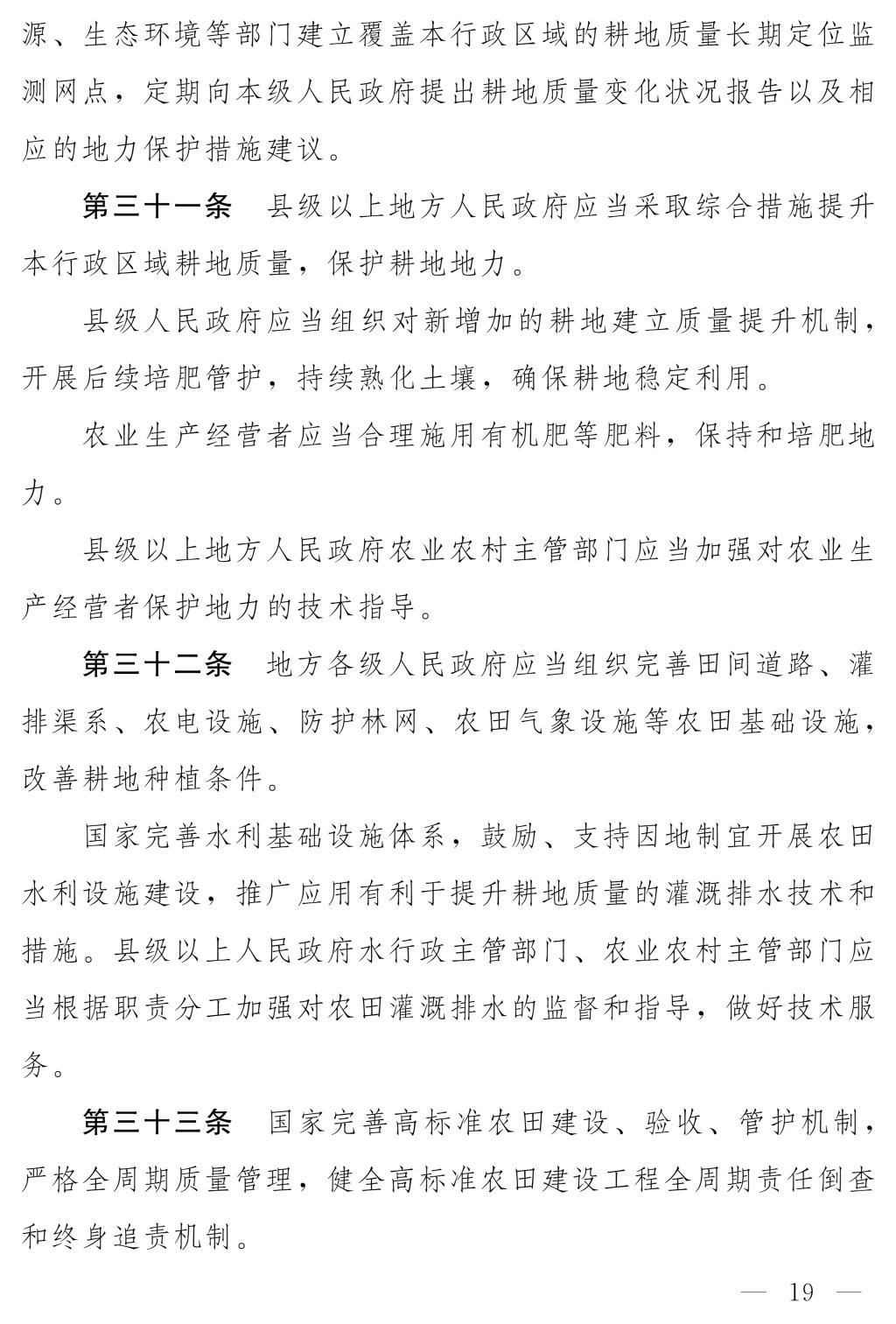 十四届全国人大常委会第十八次会议对《中华人民共和国耕地保护和质量提升法(草案)》进行了审议。现将《中华人民共和国耕地保护和质量提升法(草案)》公布,社会公众可以直接登录中国人大网(www.npc.gov.cn)或国家法律法规数据库(flk.npc.gov.cn)提出意见,也可以将意见寄送全国人大常委会法制工作委员会(北京市西城区前门西大街1号,邮编:100805。信封上请注明耕地保护和质量提升法草案征求意见)。征求意见期限为30日。