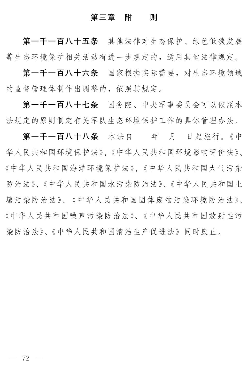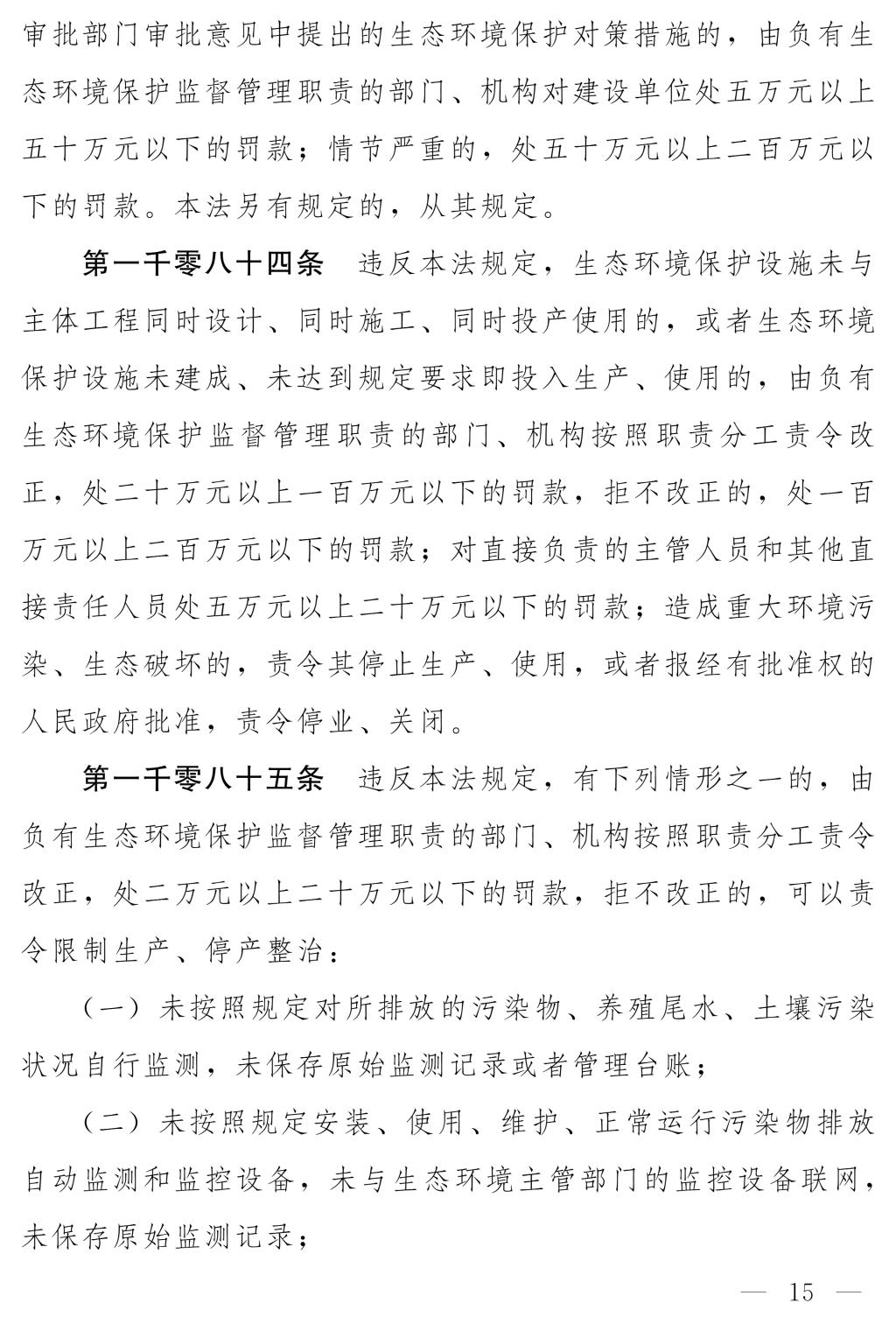 十四届全国人大常委会第十八次会议对《生态环境法典法律责任和附则编(草案二次审议稿)》进行了审议。现将《生态环境法典法律责任和附则编(草案二次审议稿)》公布,社会公众可以直接登录中国人大网(www.npc.gov.cn)或国家法律法规数据库(flk.npc.gov.cn)提出意见,也可以将意见寄送全国人大常委会法制工作委员会(北京市西城区前门西大街1号,邮编:100805。信封上请注明生态环境法典法律责任和附则编草案二次审议稿征求意见)。征求意见期限为30日。